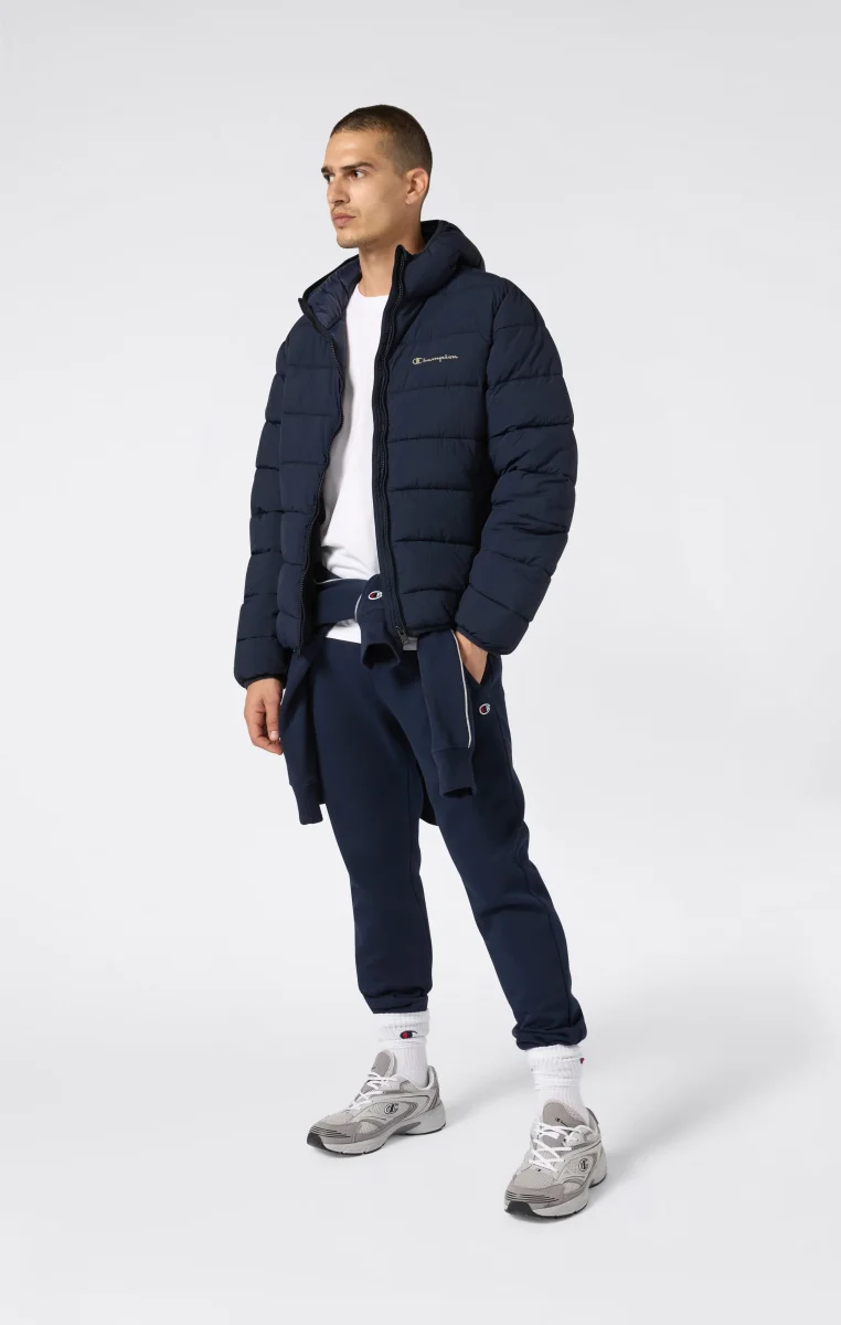 Clean and functional, this hooded padded jacket is ideal for tackling cold weather. The crinkle-effect nylon fabric with water-repellent treatment protects against the elements, while Repreve™ padding ensures warmth and environmental responsibility. Front pockets and a minimal design make it perfect for both urban and outdoor use.@@@Fabric: Woven Nylon, weight: 70 g/m² |Composition: 100% Polyamide |Front pockets |Water-repellent treatment |Repreve™ padding |Loose Fit: Wide fit, dropped shoulder, wide sleeve, regular length