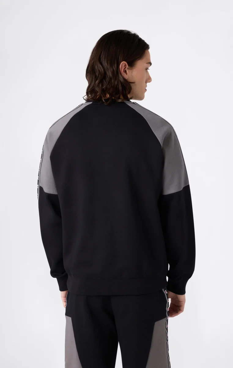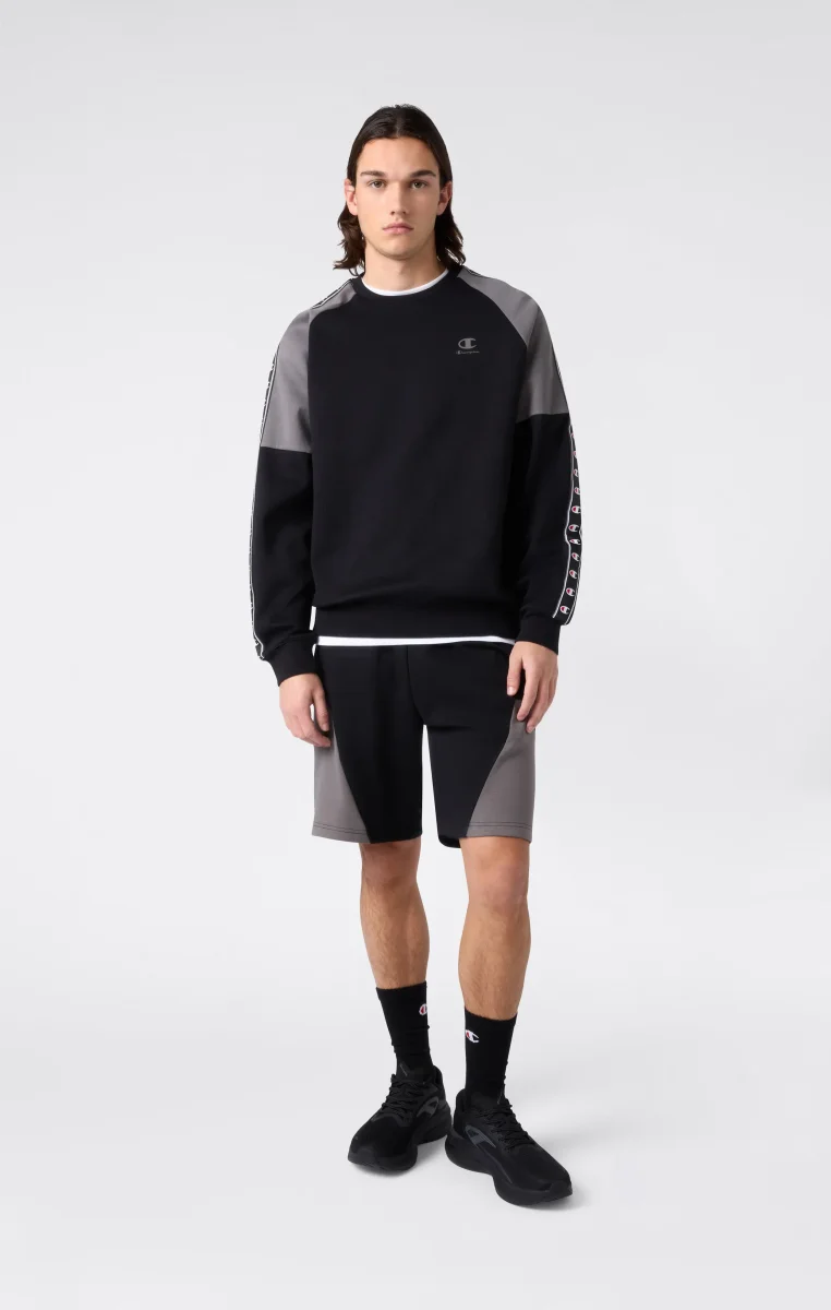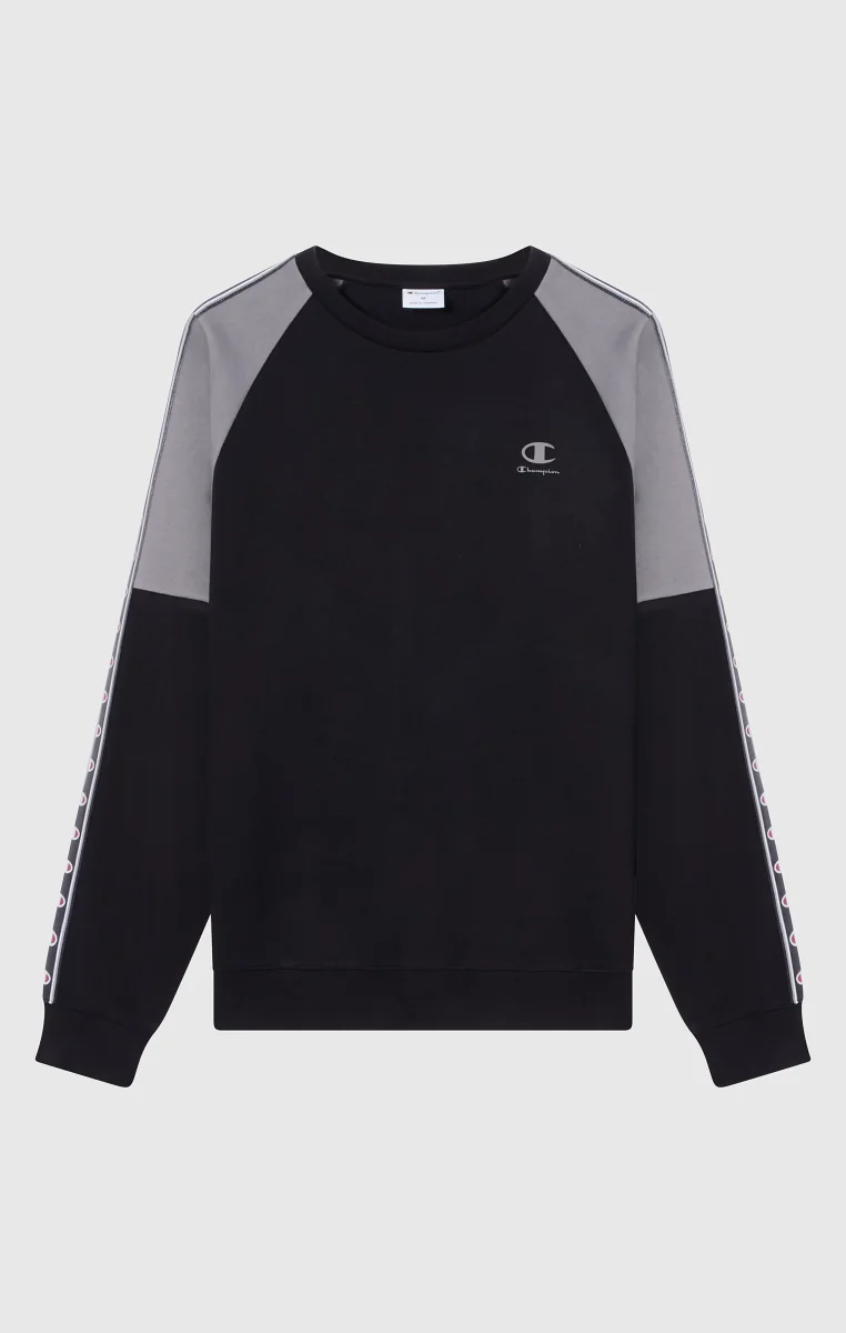 Men’s crewneck sweatshirt with a clean and bold sportswear look, inspired by 90s urban aesthetics. Made from compact interlock fabric, it delivers a structured yet comfortable feel with a Relax Fit. The raglan sleeve design and logo tape along the sleeves reflect Champion’s DNA, making it a versatile piece for everyday wear and leisure time.@@@Relax Fit, soft and slightly loose |Interlock fabric |Composition: 82% Cotton, 18% Polyester |Weight: 320 g/m² |Raglan sleeve design |Ribbed crewneck |Ribbed cuffs and hem |Unbrushed interior |Champion logo tape along the sleeves |Champion logo printed on the chest