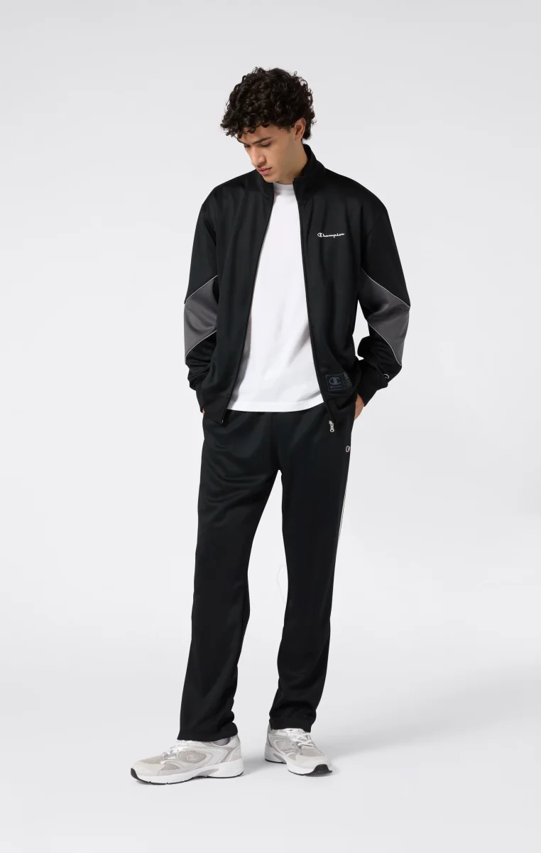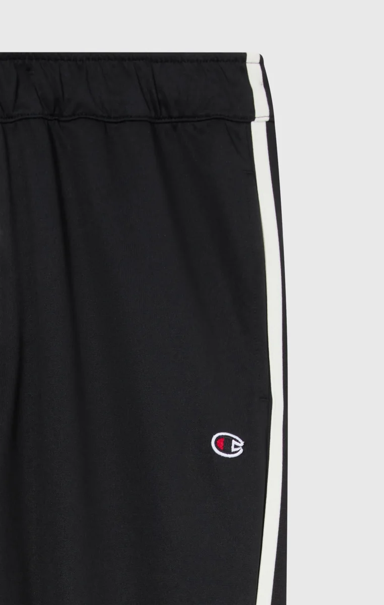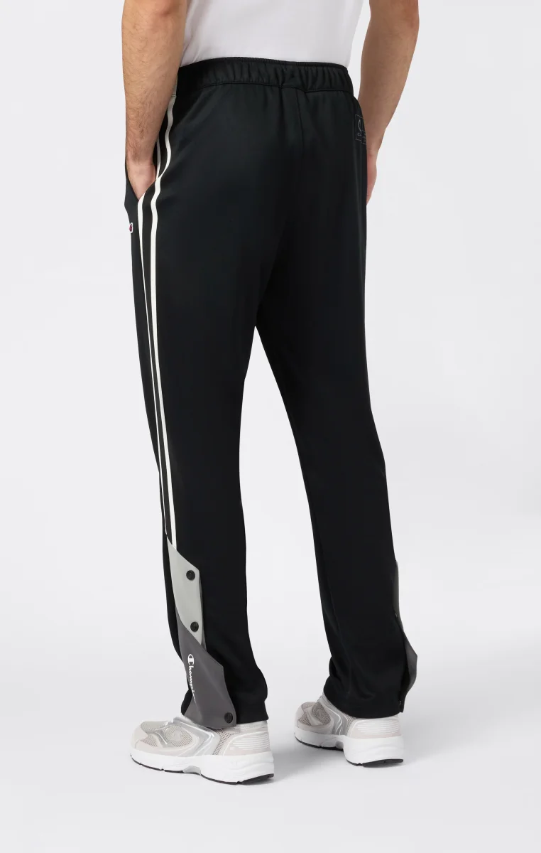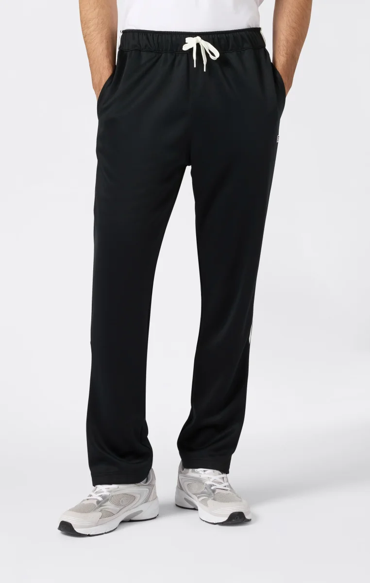 Un pantalone dallo stile sportivo e versatile, pensato per muoversi con libertà in ogni contesto urbano. Le bande laterali a contrasto e gli inserti colorblock sul fondo gamba definiscono il look, mentre la chiusura con bottoni automatici permette una regolazione personalizzata. Le tasche frontali oblique sono integrate con discrezione nella linea per massima praticità senza rinunciare allo stile.@@@Fabric: Interlock 300 g/m² |Composition: 100% polyester |Leg hem closure with snap buttons |Contrasting side stripes |Slanted front pockets |Fit: Standard Fit: Soft and comfortable