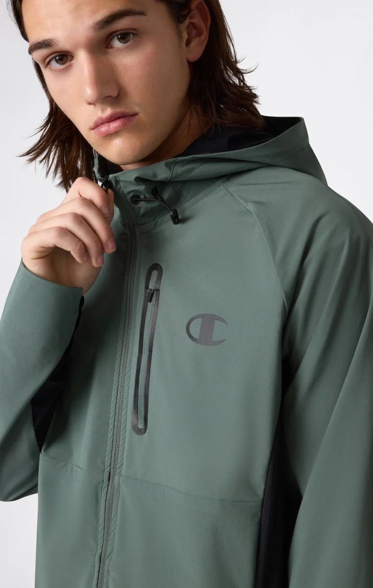 This hooded track top is designed to combine protection, lightness and freedom of movement. The stretch woven fabric ensures durability and comfort, adapting to the body without restricting mobility. The slim cut enhances the silhouette and adds a modern look, while the technical details and clean design make it ideal for both sport and leisure. A versatile and functional piece, created to face every day with style.@@@Fabric: Stretch Poly Woven 115 gr |Composition: 88% polyester – 12% elastane |Fit: Slim Fit – Close to the body without being tight, adapts to the silhouette while following natural curves |Adjustable hood for added protection |Full front zip for practicality and comfort |Ergonomic lines for optimal freedom of movement |Technical and modern design, suitable for multiple occasions