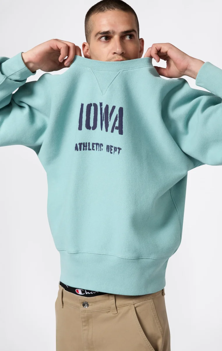An icon of Champion heritage, this crewneck sweatshirt is made with the exclusive Reverse Weave construction, patented in 1938 to reduce vertical shrinkage and maintain its shape over time. The heavyweight fabric and brushed interior ensure comfort and durability. Part of the Index & Archives Lighthouse capsule, a special project that reinterprets the most authentic pieces from the Champion archive with premium finishes and timeless style.@@@Fabric: Reverse Weave Fleece 430 g/m² |Composition: 90% Cotton, 10% Polyester |Brushed interior |Reverse Weave: patented anti-shrink construction since the 1930s |Ribbed collar, cuffs and hem |Embroidered C logo on sleeve |Fit: Custom Fit – slightly loose fit with dropped shoulders and a comfortable silhouette