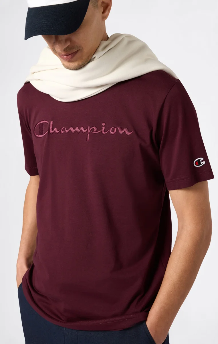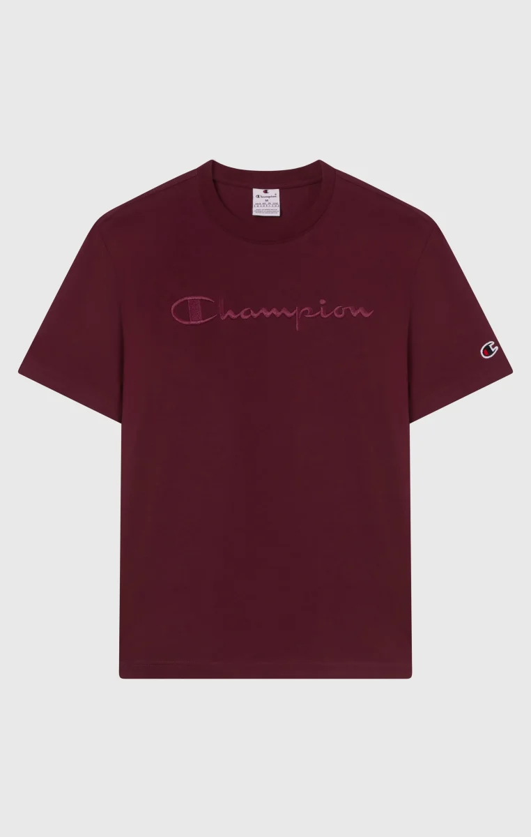 Minimalism meets identity in this Icons crewneck t-shirt. Made from 180 g/m² combed cotton jersey, it’s designed for everyday comfort and lightness. The tonal embroidered logo on the chest adds an iconic yet subtle touch—perfect for a clean, refined look.@@@Fabric: Athletic Combed Jersey – 180 g/m² |Composition: 100% Cotton |Soft and breathable fabric |Tone-on-tone embroidered Champion logo |Ribbed collar |Short sleeves |Fit: Standard Fit – versatile and comfortable with standard widths and lengths. Follows the body without clinging. Regular shoulder cut. |We recommend choosing one size down from your usual.