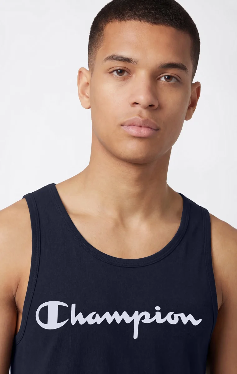 This men’s tank top is part of Champion’s classics and is made from lightweight combed cotton jersey, soft and comfortable against the skin. The regular fit provides a clean and comfortable silhouette, ideal for everyday wear and leisure time. The essential design is defined by a large printed Champion logo on the chest, an iconic and instantly recognizable detail.@@@Fit: Standard Fit – comfortable, regular line |Fabric: Athletic Jersey Combed, lightweight and soft cotton jersey |Composition: 100% Cotton |Weight: 180 g/m² |Design: tank top |Details: wide armholes |Logo: maxi printed Champion logo on the chest