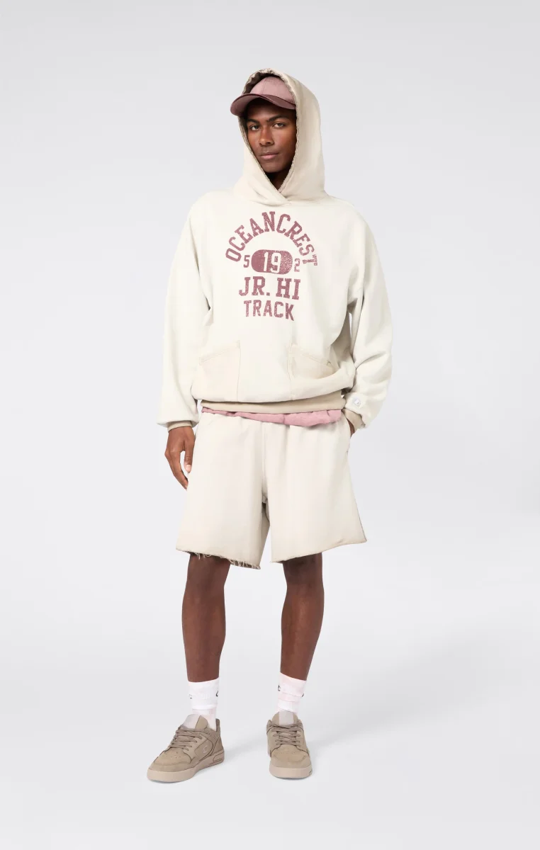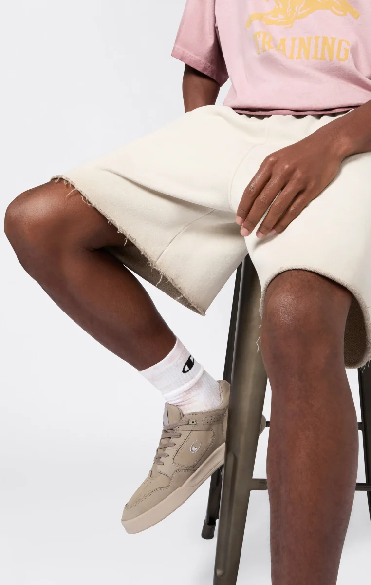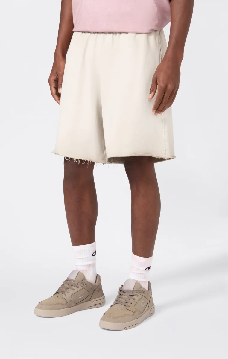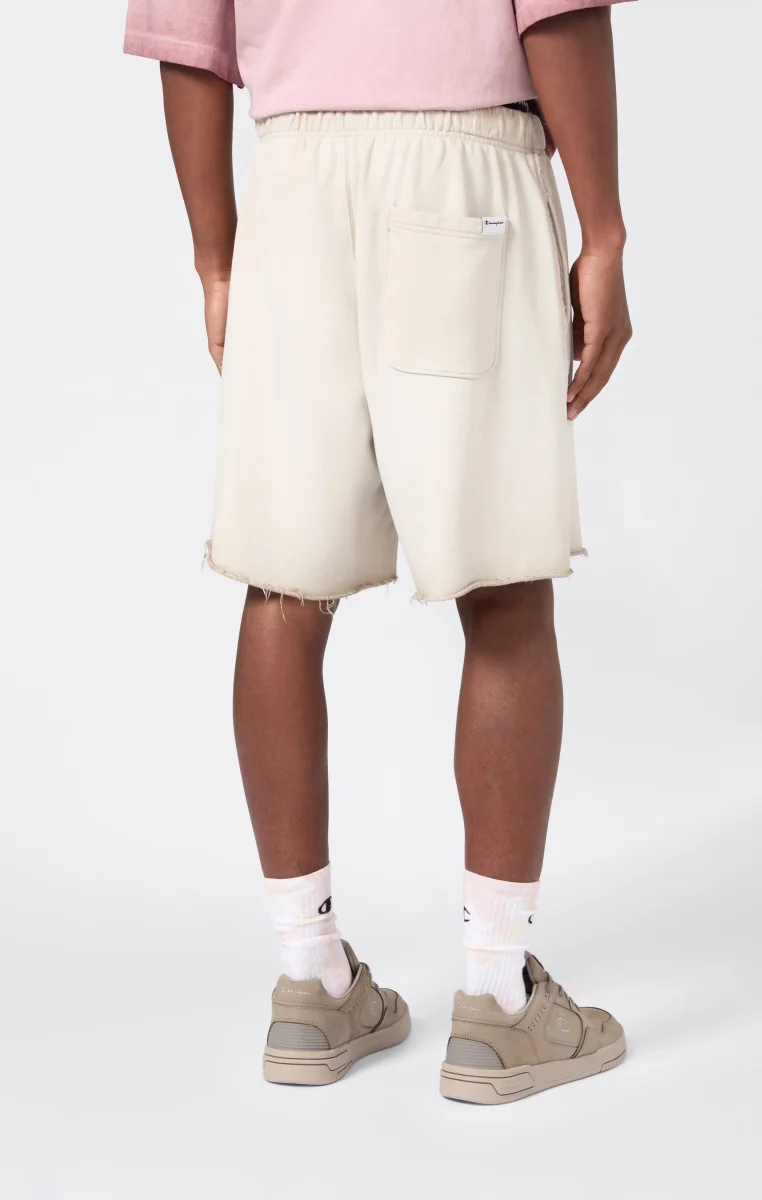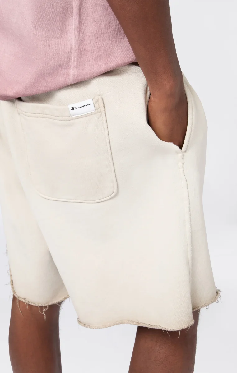 A classic of the sports wardrobe reinterpreted according to Champion’s heritage DNA: these men’s bermuda shorts from the Time Capsule line combine comfort and retro style with a modern spirit. The Luna Dye wash gives the fabric a unique faded effect, while the loose fit and soft lines recall the authentic sportswear from the archives. Patch pockets and an elasticated waistband complete a piece ideal for relaxing with personality.@@@Fabric: Heavyweight terry – 510 g/m² |Composition: 100% Cotton |Luna Dye wash with faded effect |Elasticated waistband |Side pockets and patch pockets on the back |Raw-cut hem |Tone-on-tone heritage embroidered logo |Fit: Loose Fit – oversized, with soft lines and non-rigid fabrics for maximum comfort and a relaxed look
