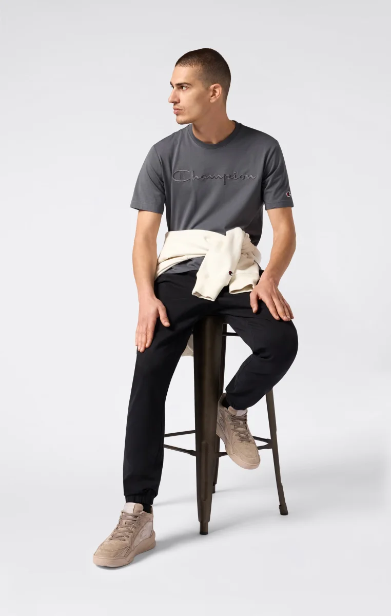 Designed for those who seek comfort and style without compromise, these men’s heavy cotton twill pants are perfect for the cold season. The peached treatment gives the fabric a soft, velvety surface, while the elastane content ensures freedom of movement. The elasticated cuffed leg hem adds a sporty and contemporary touch.@@@Fabric: Stretch cotton twill with peached effect |Composition: 98% Cotton, 2% Elastane |Weight: 335 g/m² |Elasticated cuffed hem |Front pockets |Peached effect: treatment that makes the fabric surface soft to the touch and slightly velvety |Elasticated waistband with adjustable drawstring |Fit: Standard Fit: Versatile and comfortable fit with standard widths and lengths.