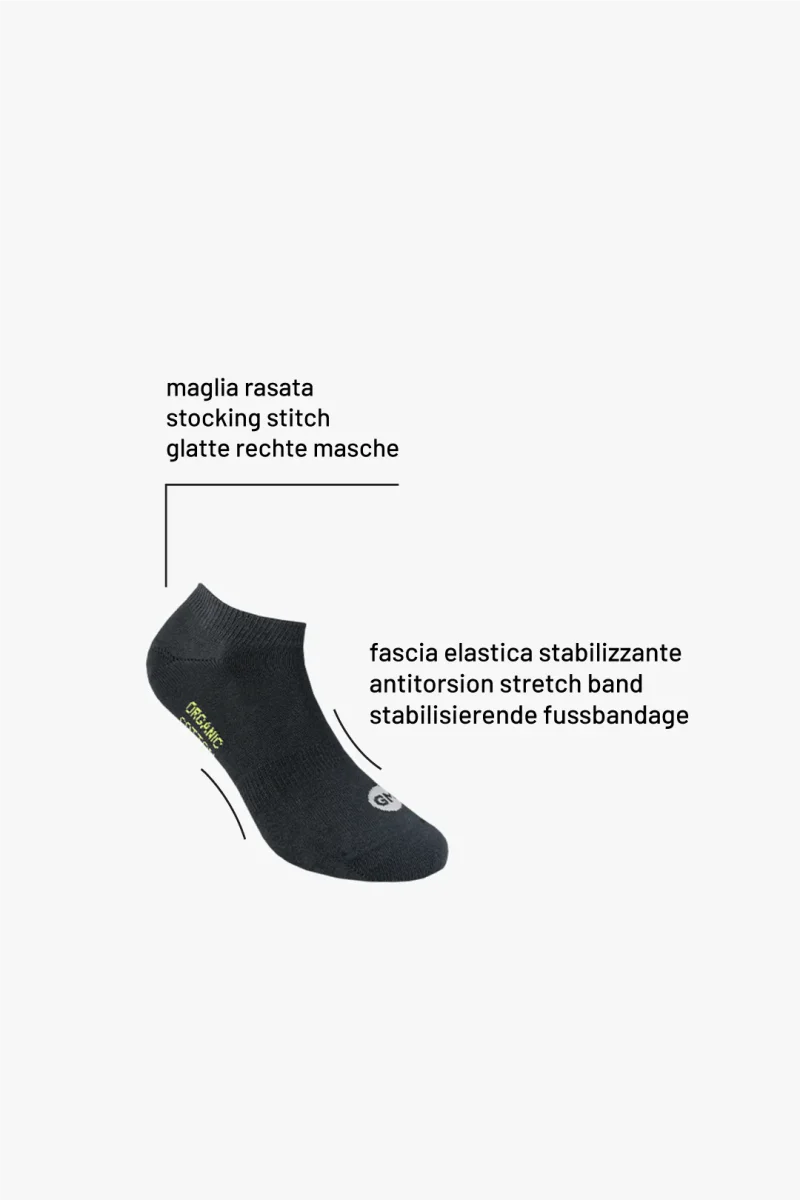 Calza leggera in cotone biologico elasticizzato, discreta e affidabile per un uso versatile.