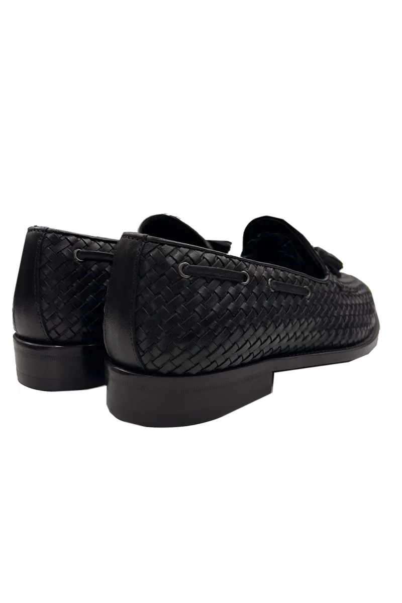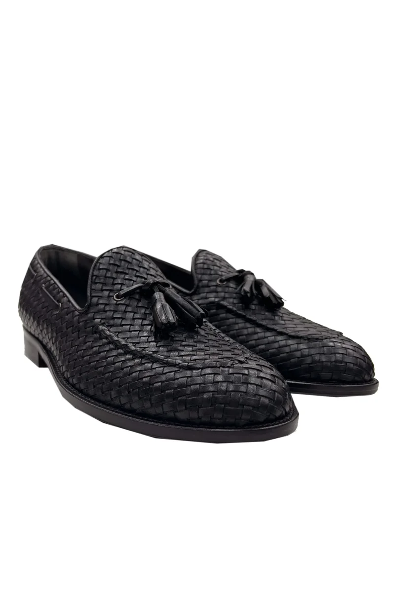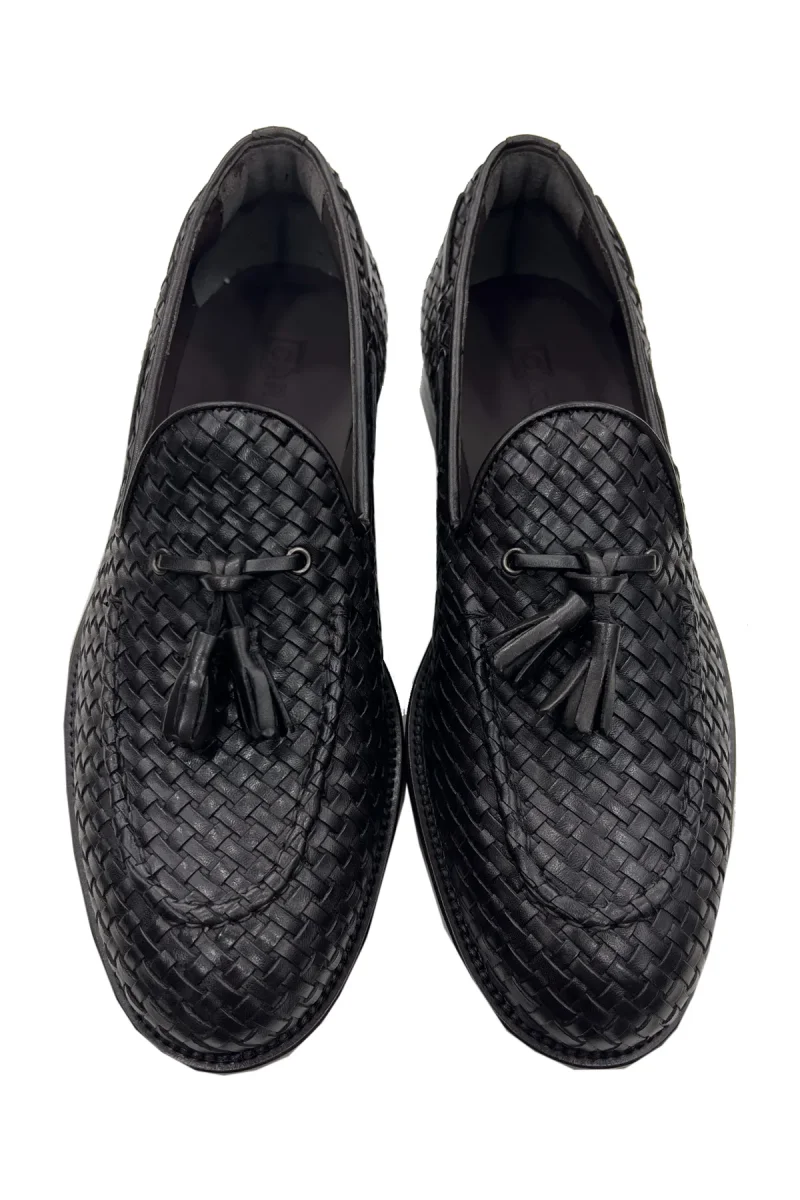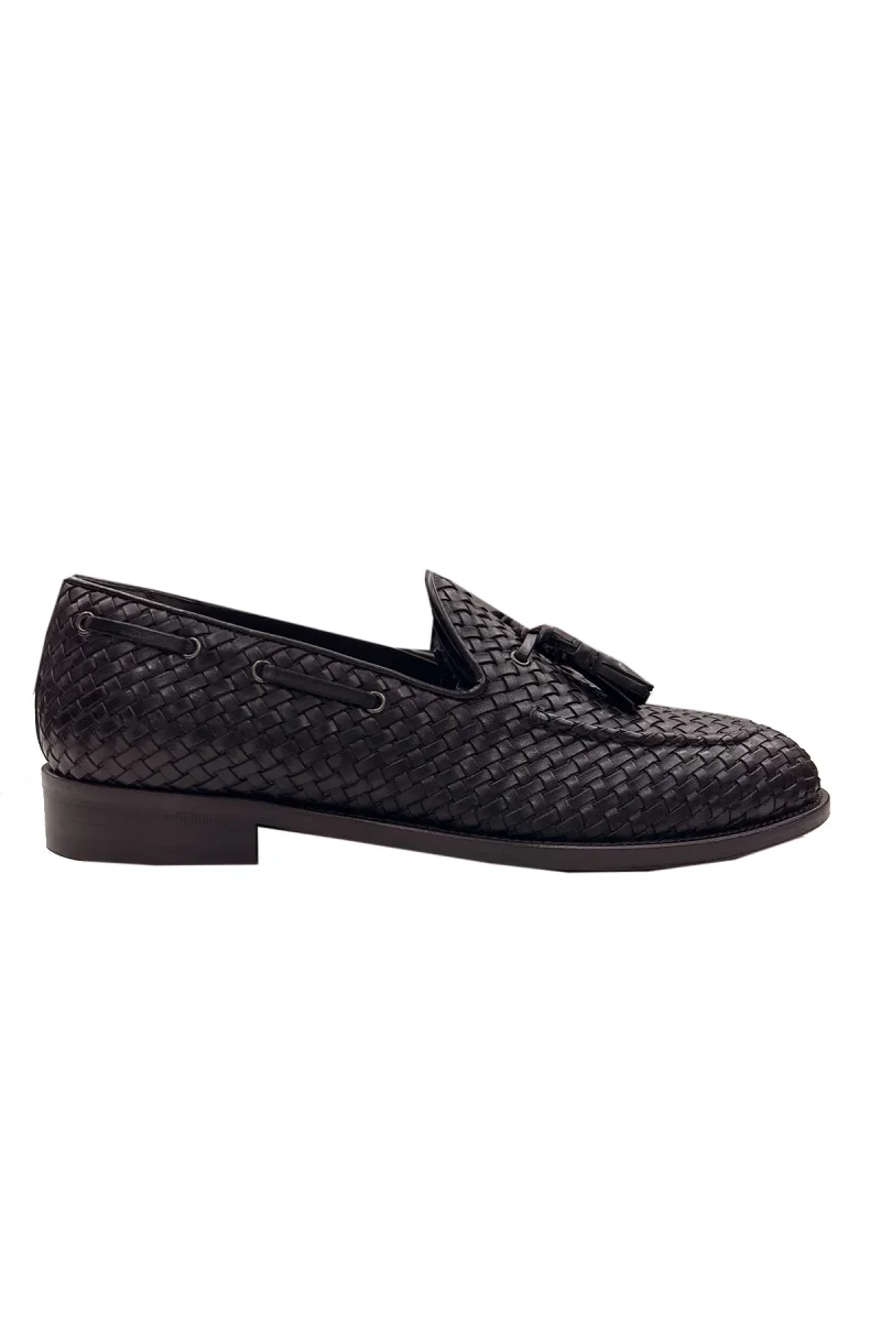 MOCASSINI UOMO MARRONE SCURO IN VERA PELLE INTRECCIATA CON NAPPINE