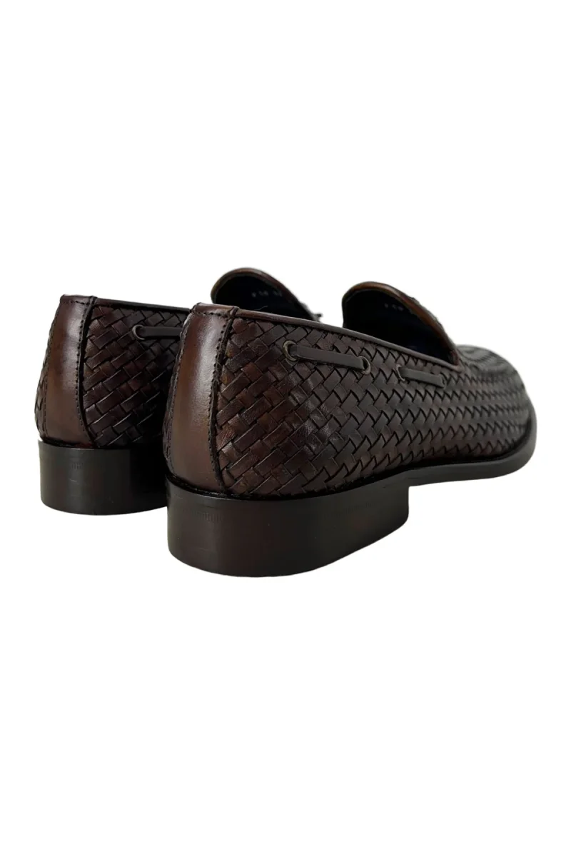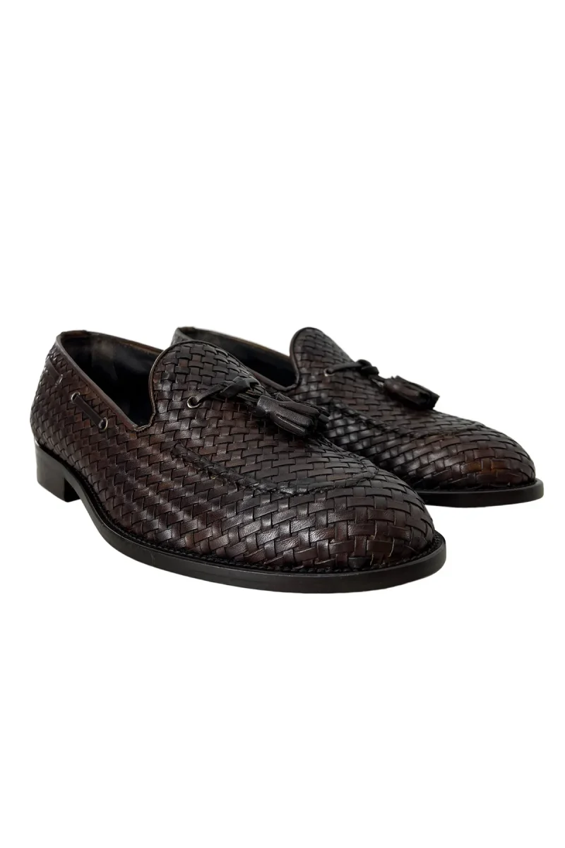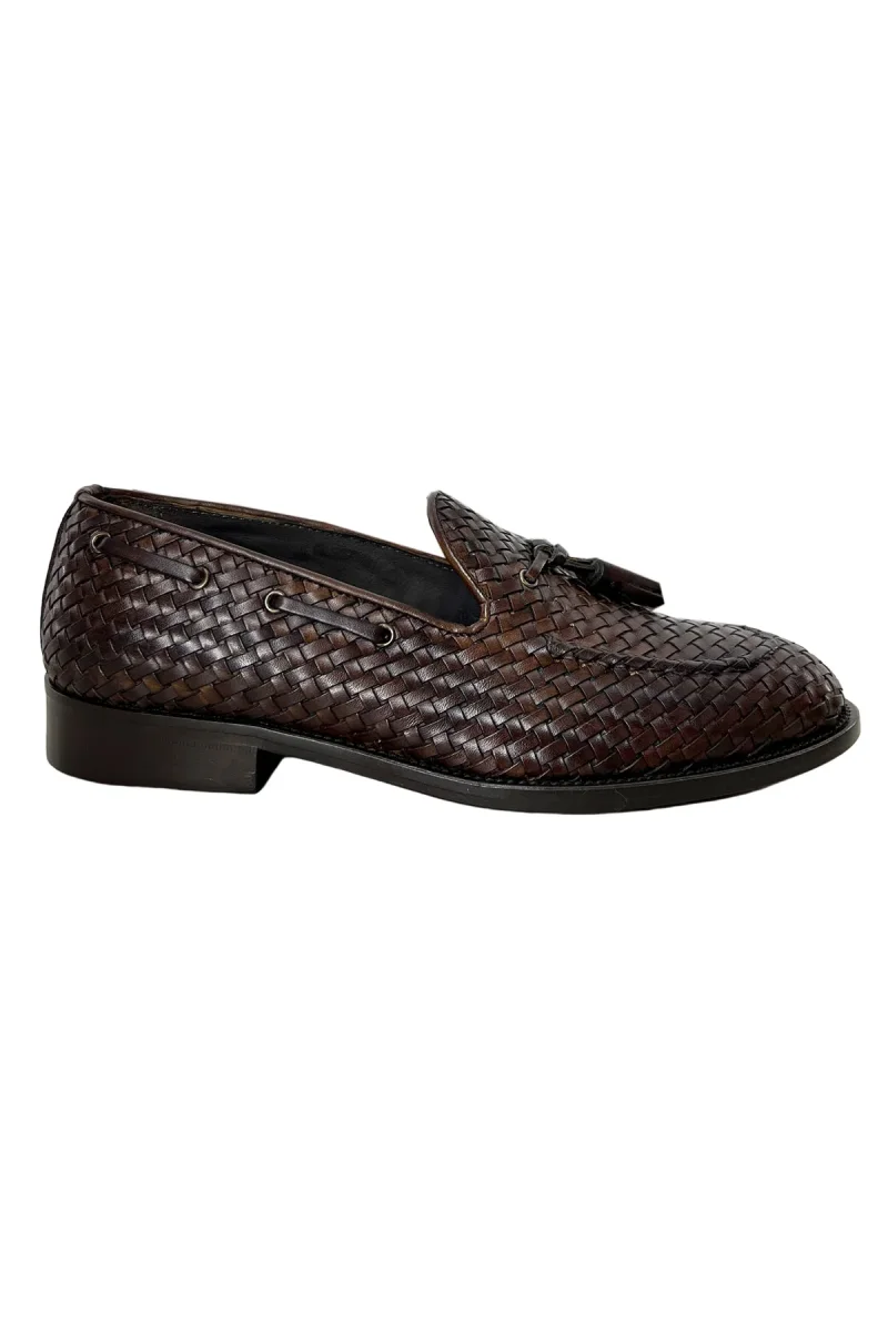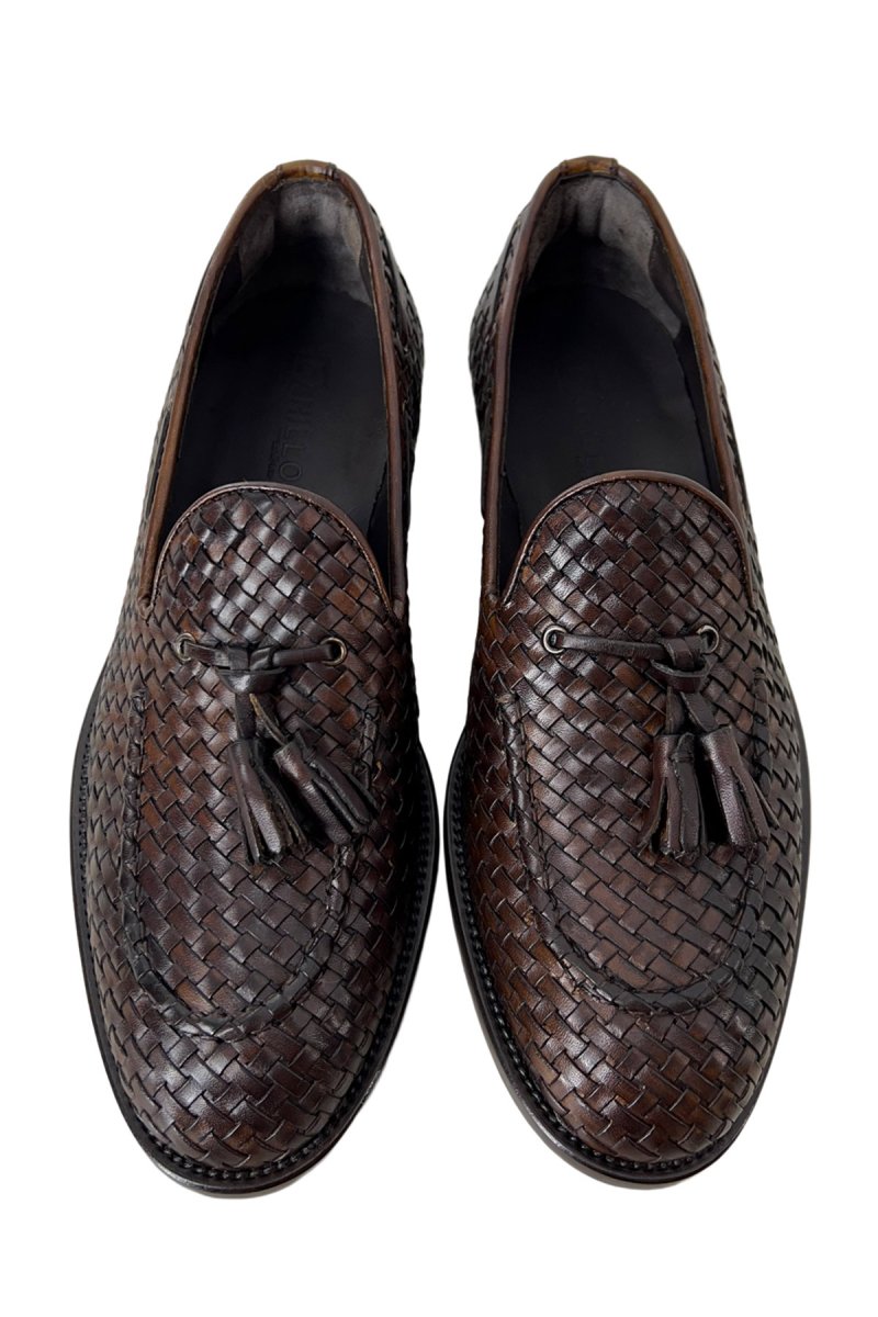 MOCASSINI UOMO MARRONE IN VERA PELLE INTRECCIATA CON NAPPINE