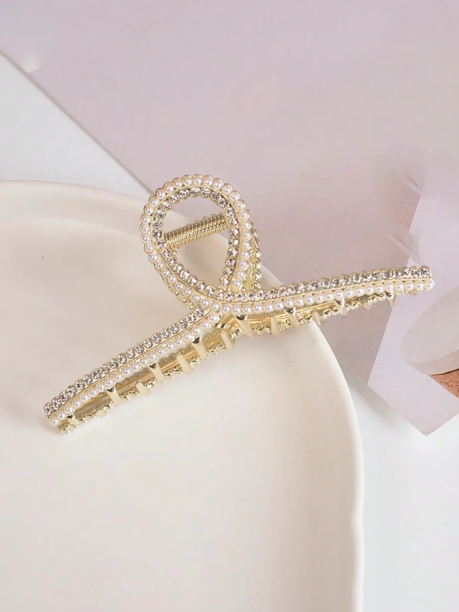 Molletta per capelli di grandi dimensioni con perle e cristalli