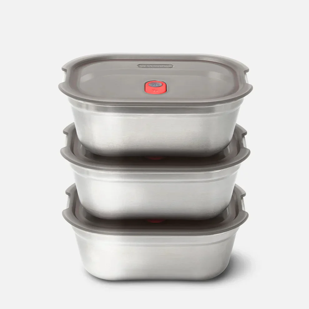 Queste scatole per alimenti in acciaio per microonde sono a prova di perdite, lavastoviglie e forno e sono disponibili in una gamma di dimensioni per la colazione, il pranzo e tutto il resto. Leggeri, ermetici e resistenti, sono perfetti per la preparazione dei pasti, la conservazione degli alimenti o semplicemente per mangiare on-the-go. Scegli 3 della stessa taglia, o 3 dimensioni diverse per tutta la famiglia, o tipo di pasto.