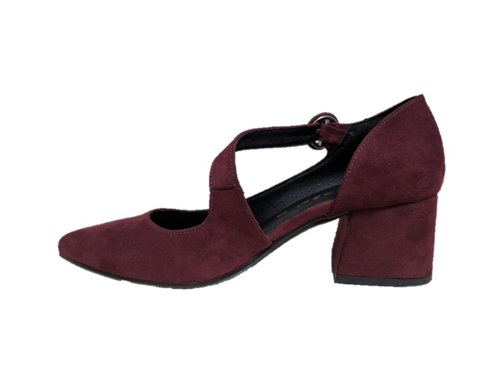 decoltè con tomaia in sintetico, tacco 5,5cm, sottopiede in pelle