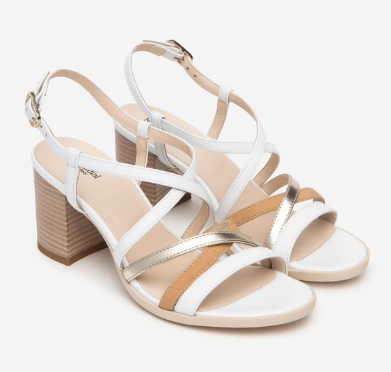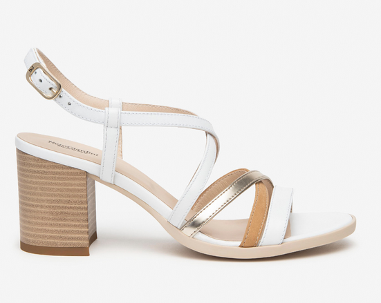 sandali in pelle colore bianco, tacco 6cm, made in Italy