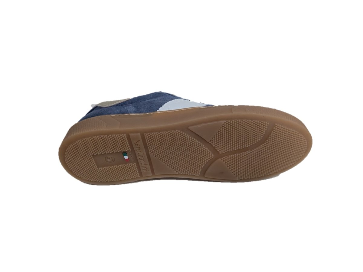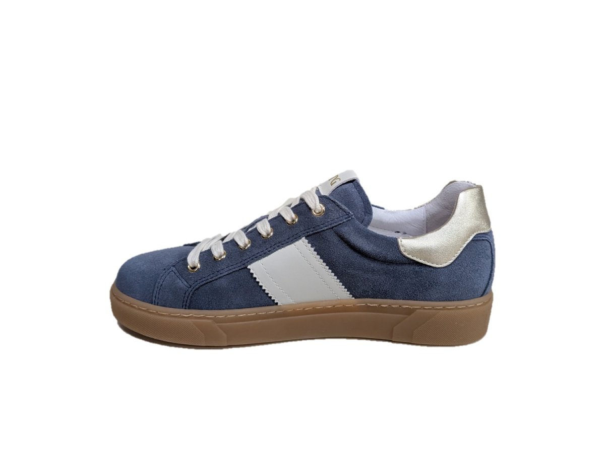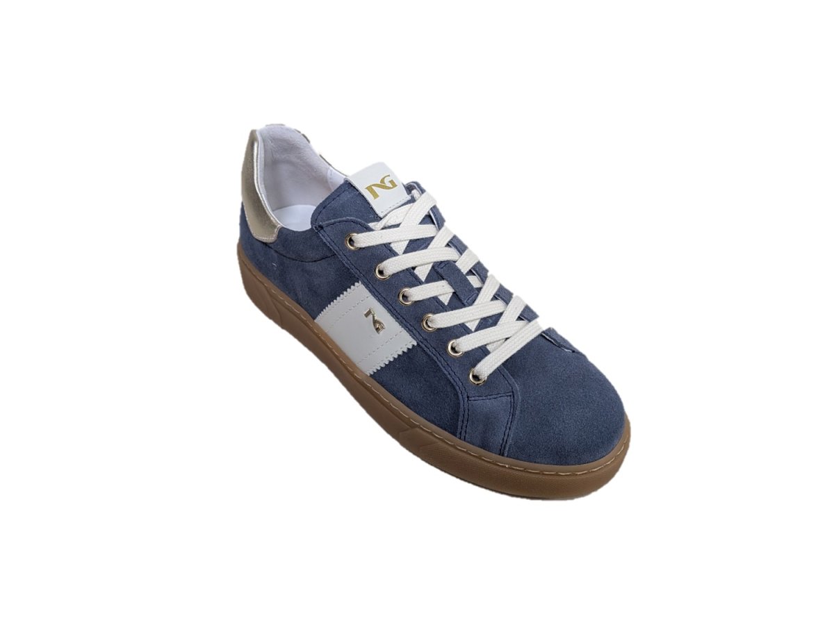 Sneakers in pelle scamosciata colore avio con finiture oro, suola in gomma, sottopiede estraibile drygo! assorbe il sudore e asciugatura rapida che mantiene il piede asciutto, made in Italy