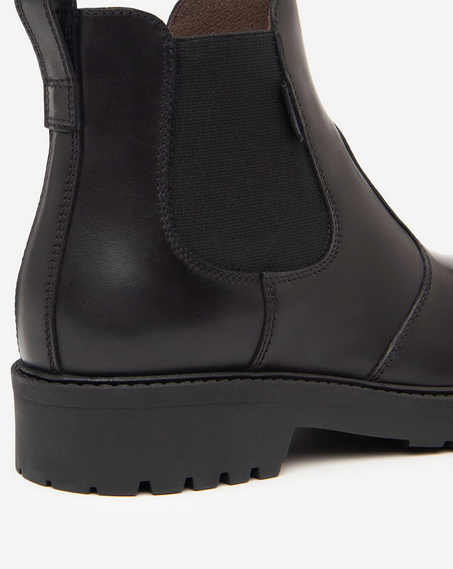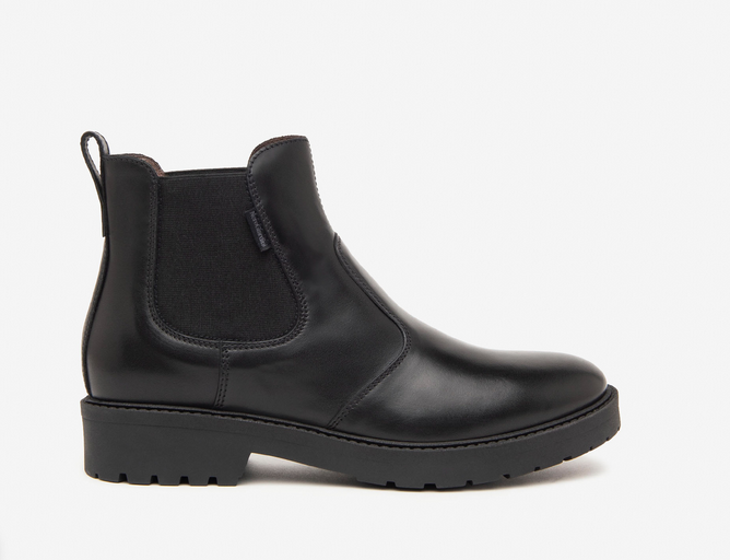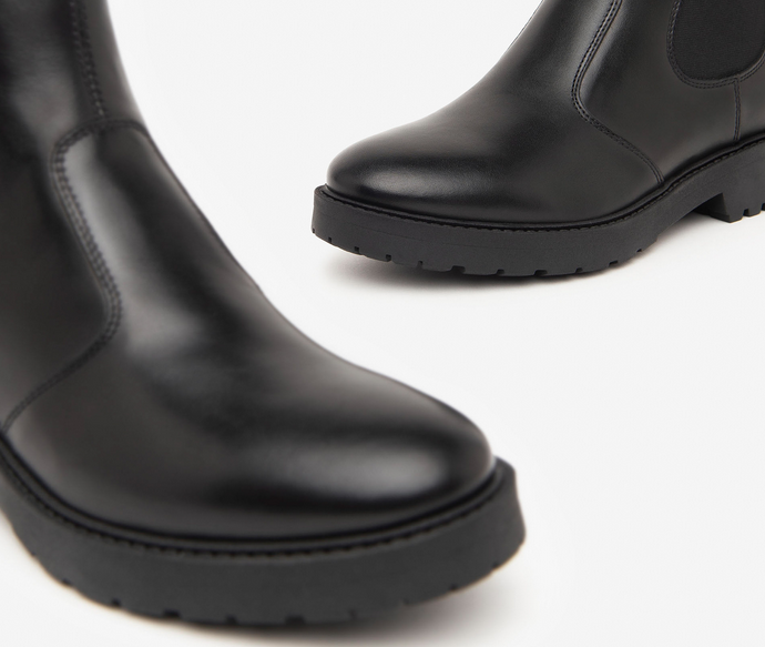 stivaletti in pelle colore nero, tacco 3,5cm, suola in gomma, senza chiusura, made in Italy