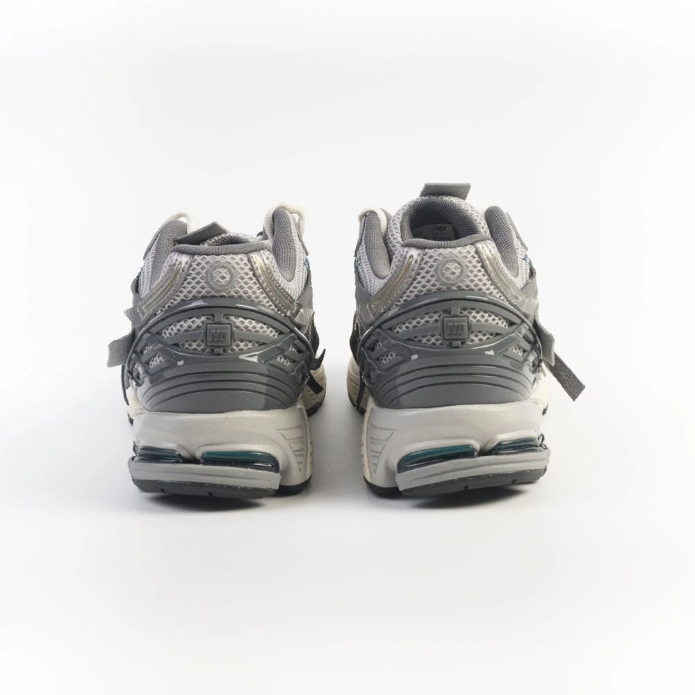 Sneakers 1906 Collezione Protection Pack, di New Balance, realizzata in mesh di colore grigio chiaro, dettagli di camoscio e pelle liscia di colore tortora e materiale gommato di colore grigio. Dettaglio della N distintiva del brand, laterale di colore grigio. Lacci in cotone di colore avorio.