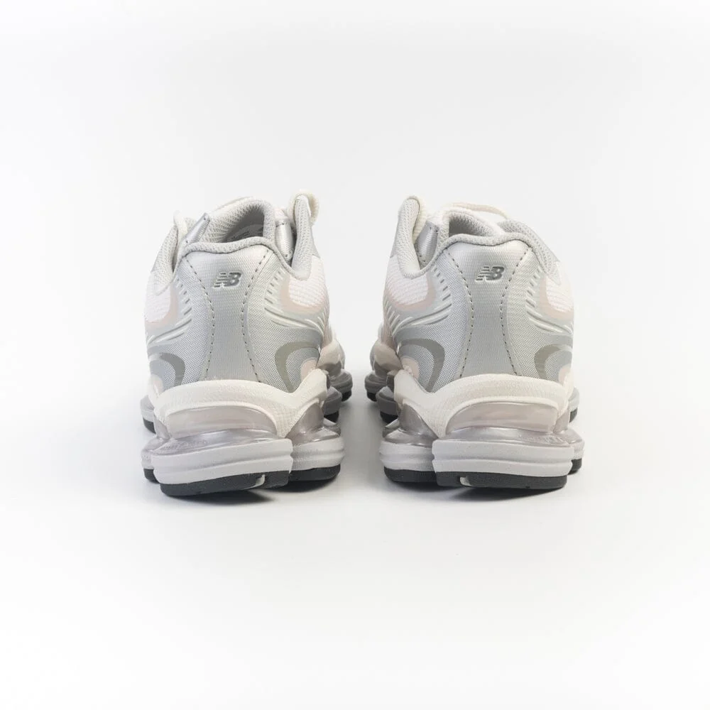 Nuovo Modello 20005 dI New Balance ispirato ai classici del running degli anni 2000, che la rendono un punto focale di uno stile innovativo. Realizzata con tomaia in tessuto tecnico traspirante di colore bianco e rosa cipria con inserti gommati di colore antico, grigio e argento. Morbidi lacci di colore avorio. Marchio distintivo laterale del brand di colore grigio con profilo argento. Nuovo fondo in gomma ABZORB ammortizzato di colore grigio dal design futuristico.
