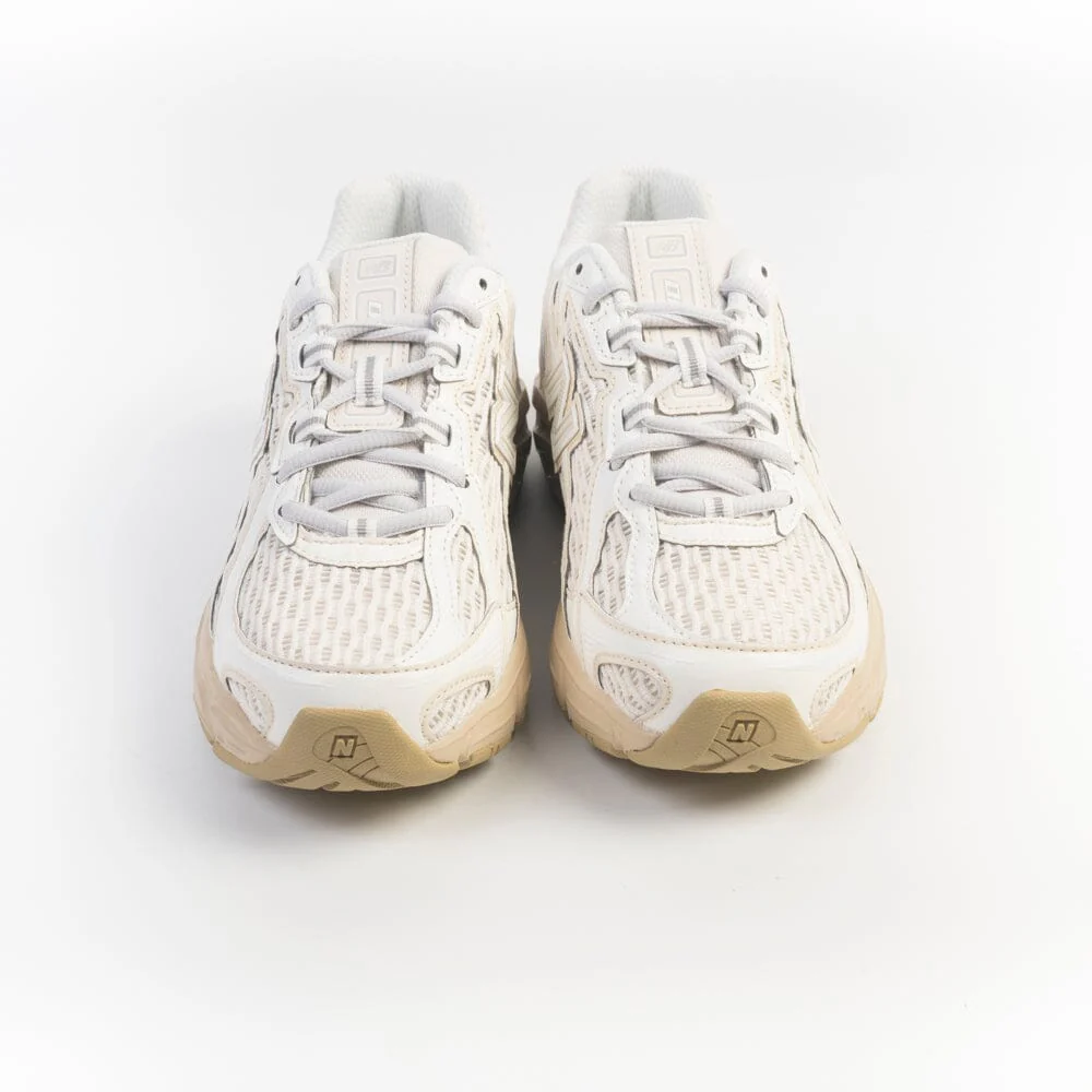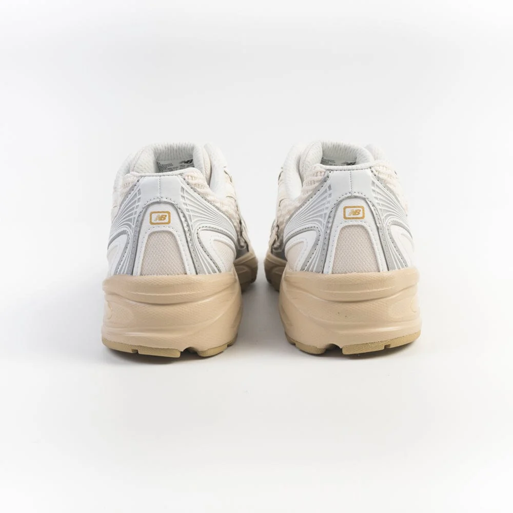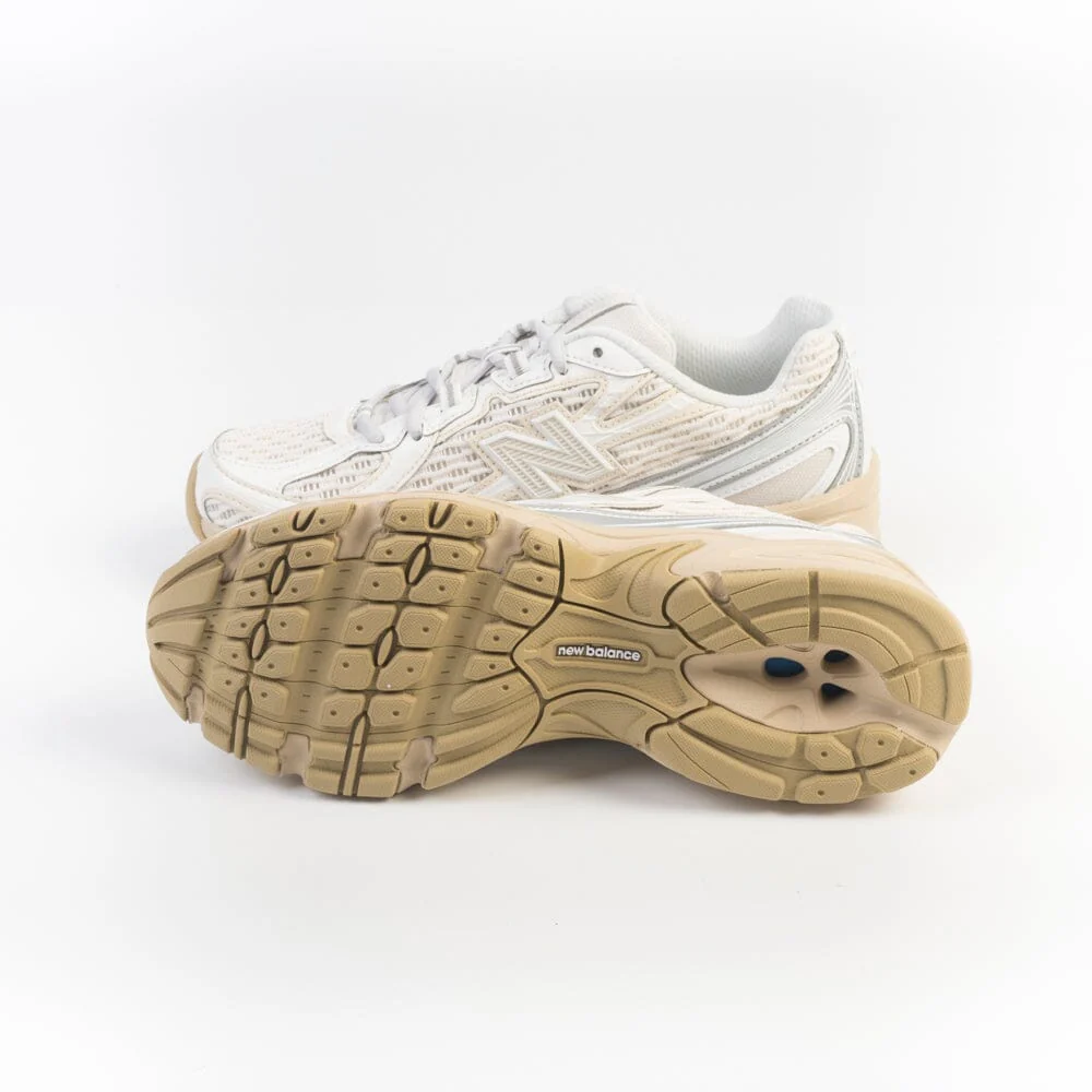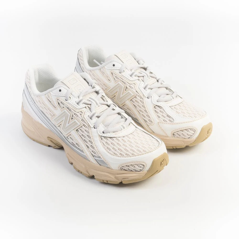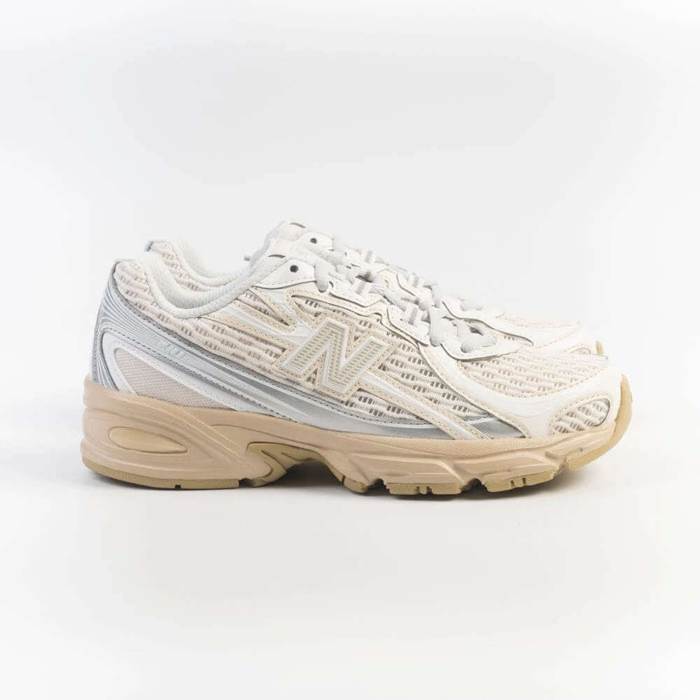 La leggerissima 740 di New Balance fa parte della linea “running” ed è realizzata con tomaia in mesh di colore beige a trama aperta e materiale gommato di colore grigio, beige e bianco. Fondo in gomma con tecnologia Abzorb®, altezza di 30 mm (tallone) di colore beige. Morbidi lacci grigi.