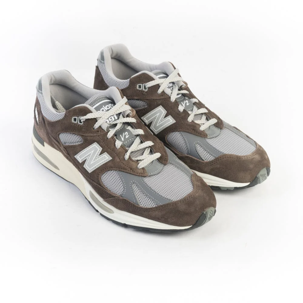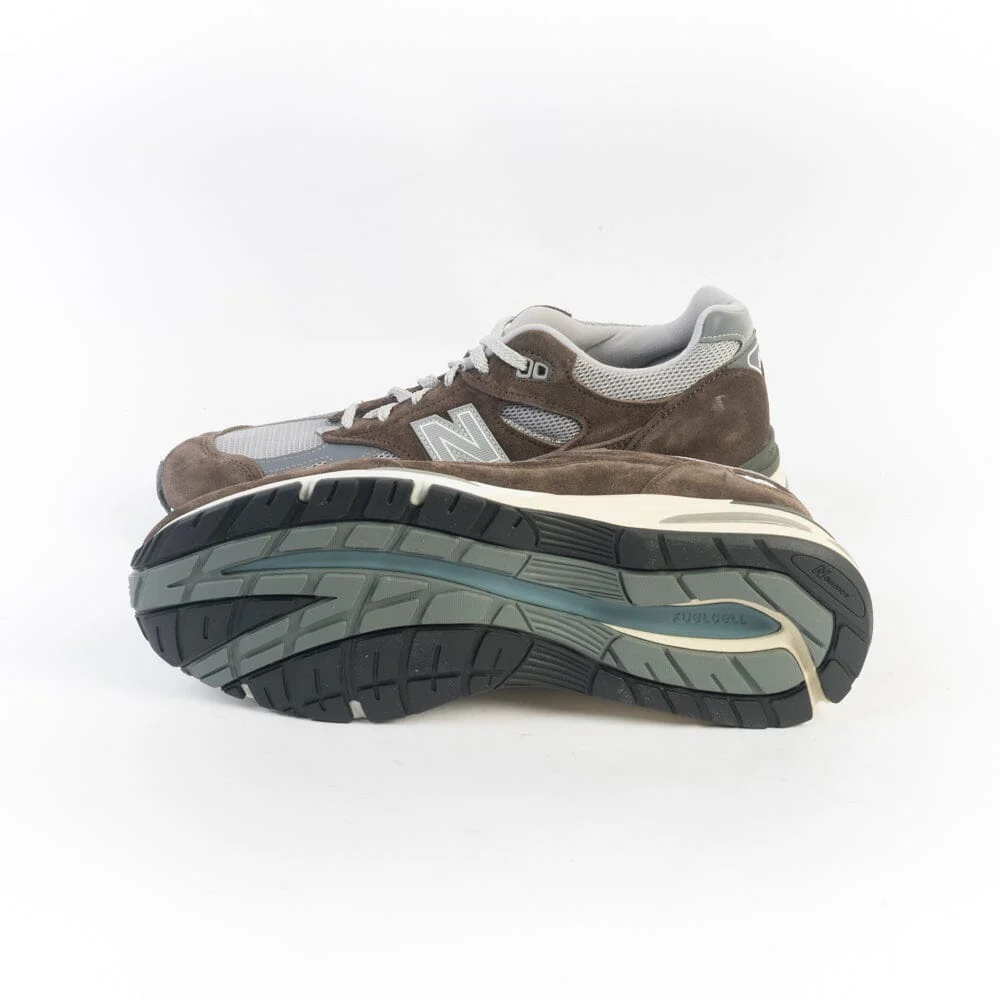 La 991 è la Sneaker iconica di New Balance dal comfort eccezionale, qui proposta nella sua nuova versione V2, che vede l’introduzione dell’intersuola ammortizzata in FuellCell. Tomaia in pelle scamosciata di colore marrone, con inserti in pelle e mesh di colore grigio e materiale gommato in nuance ; label laterale del brand in materiale catarifrangente. Lacci in cotone di colore brigio chiaro e laccio di scorta di colore bianco. Ammortizzazione ABZORB® nella parte centrale del piede per un assorbimento eccezionale degli shock da impatto. Suola in gomma soffiata.
