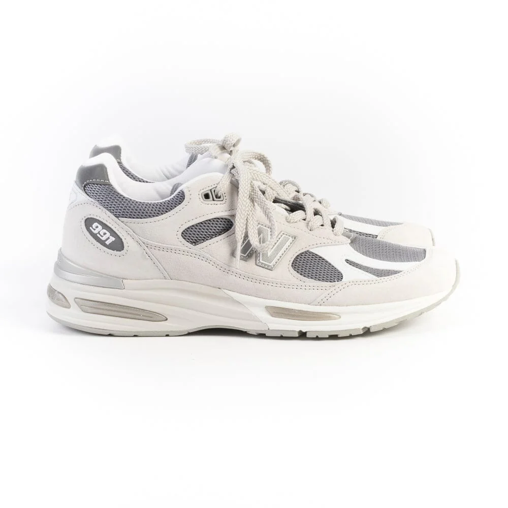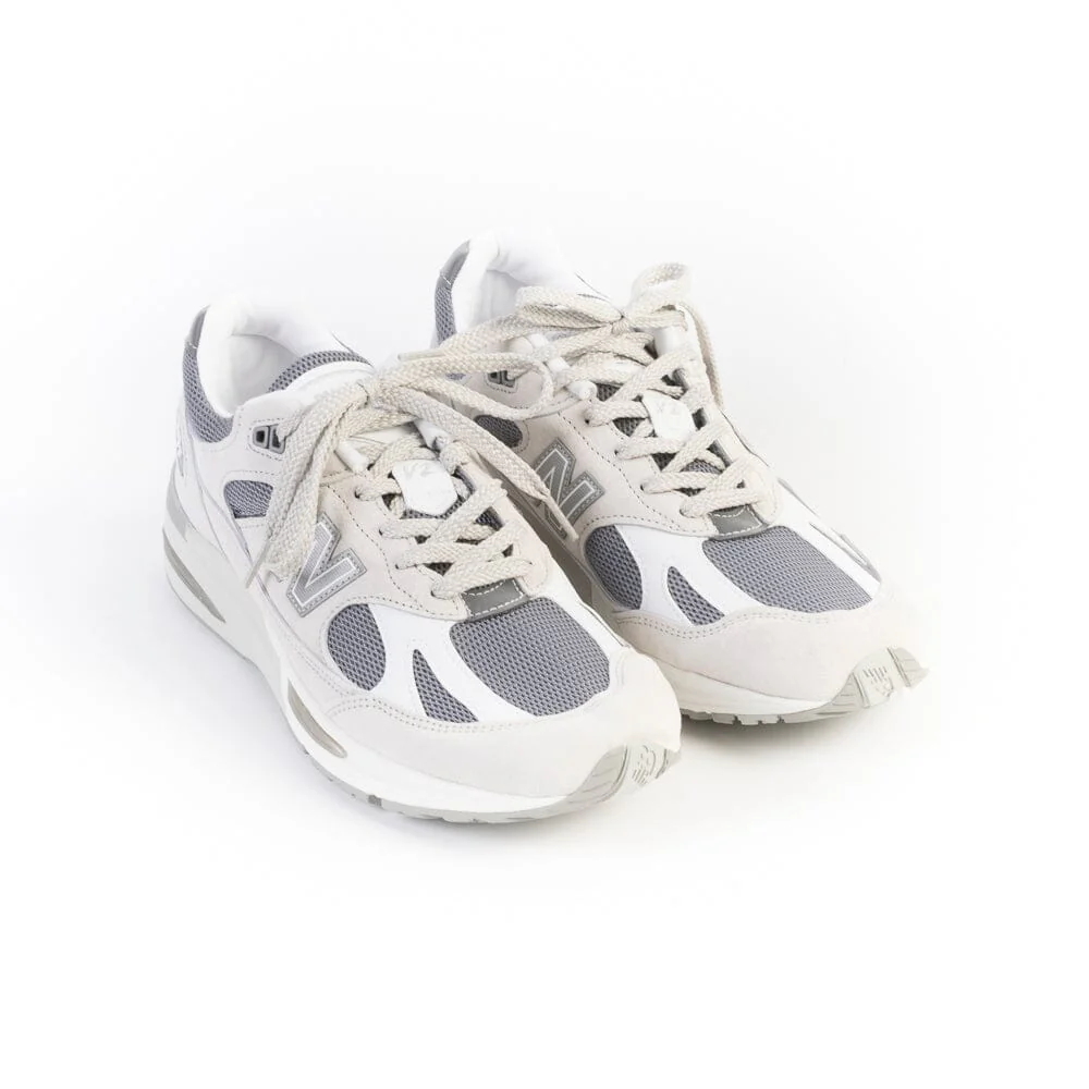 La 991 è la Sneaker iconica di New Balance dal comfort eccezionale, qui proposta nella sua nuova versione V2, che vede l’introduzione dell’intersuola ammortizzata in FuellCell. Tomaia in camoscio di colore grigio chiaro, con inserti in mesh di colore grigio; label laterale del brand in materiale catarifrangente. Lacci in nuance e di ricambio di colore bianco. Ammortizzazione ABZORB® nella parte centrale del piede per un assorbimento eccezionale degli shock da impatto. Suola in gomma soffiata.