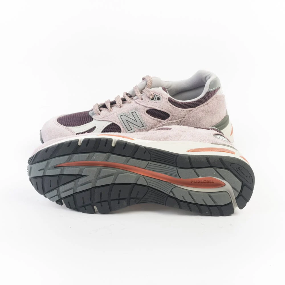 La 991 è la Sneaker iconica di New Balance dal comfort eccezionale, qui proposta nella sua nuova versione V2, che vede l’introduzione dell’intersuola ammortizzata in FuellCell. Tomaia in pelle scamosciata di colore malva, con inserti in mesh di colore rosso bordeaux; label laterale del brand in materiale catarifrangente. Lacci colore rosa antico e laccio di ricambio colore grigio perla. Ammortizzazione ABZORB® nella parte centrale del piede per un assorbimento eccezionale degli shock da impatto. Suola in gomma soffiata.