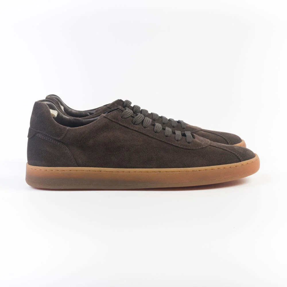 Sneakers di Officine Creative realizzate in morbidissimo camoscio di colore marrone scuro. Morbidi lacci in cotone in nuance. Interno sfoderato e soletta estraibile in pelle. Fondo in lattice di colore naturale, estremamente flessibile.