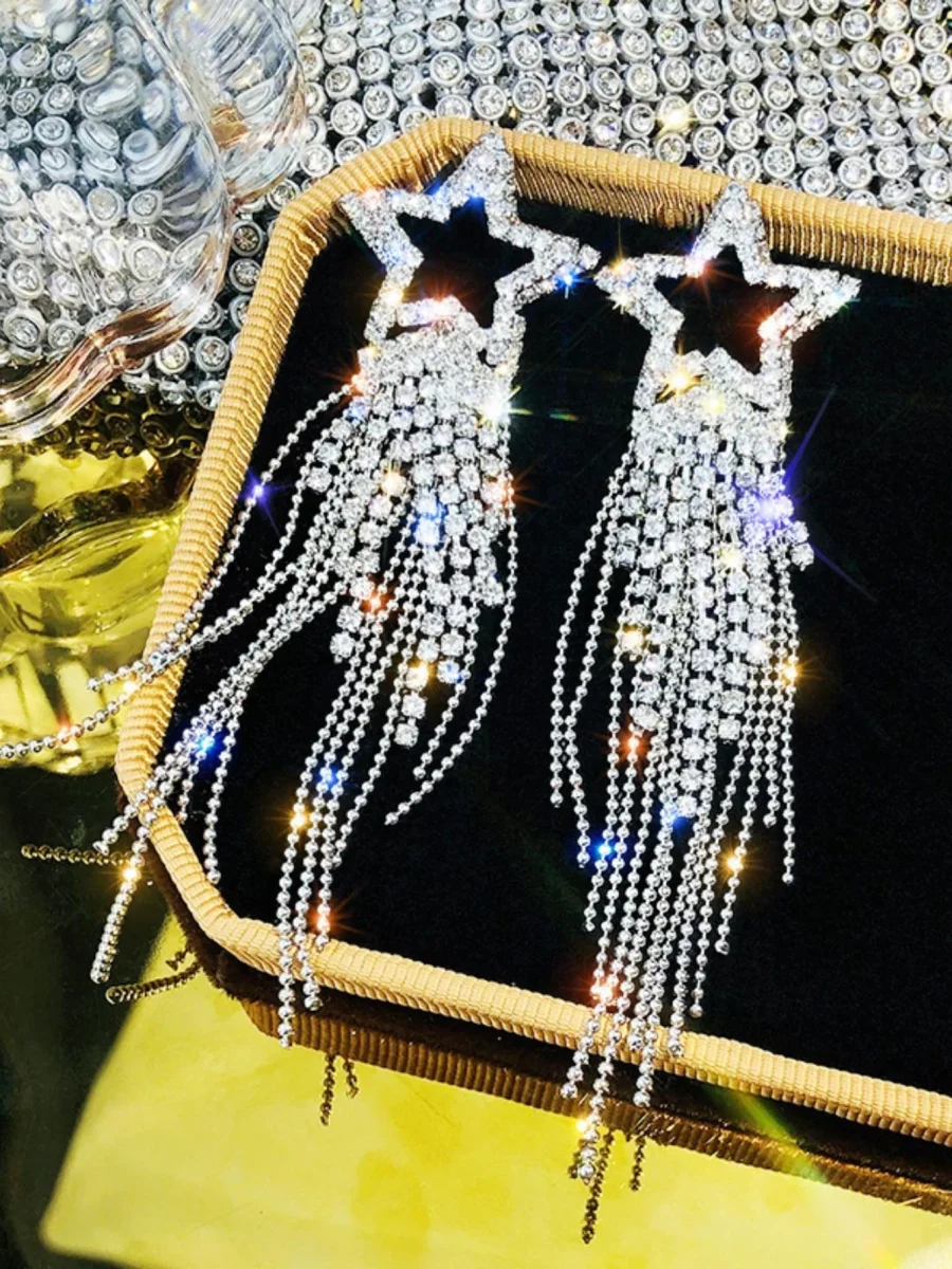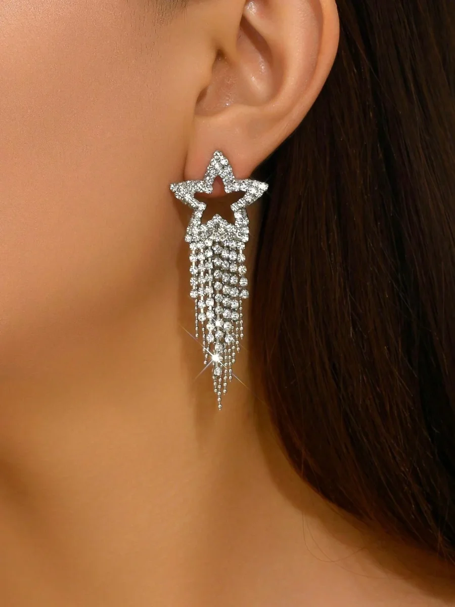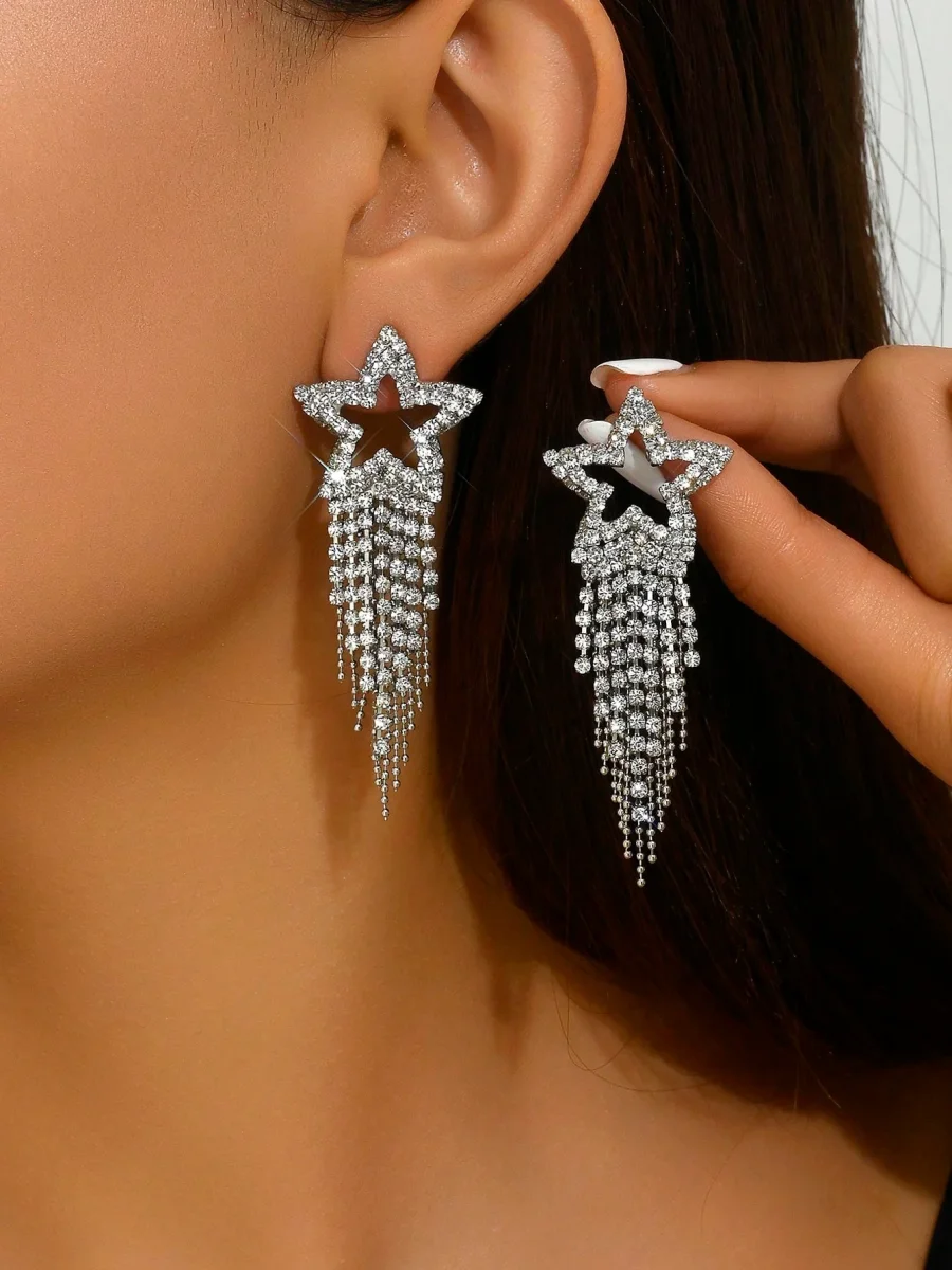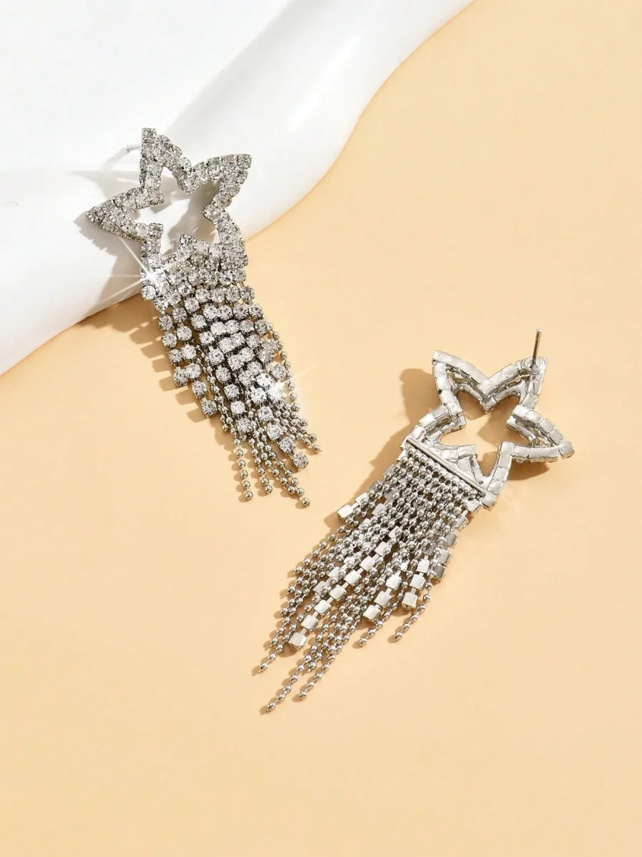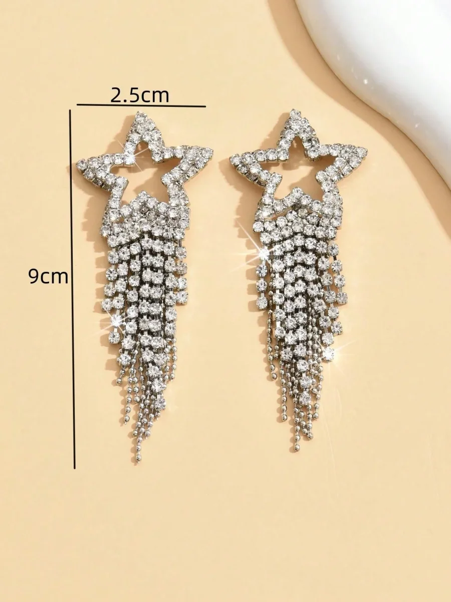 Orecchini pendenti lusso lega di zinco con strass stella & con frange