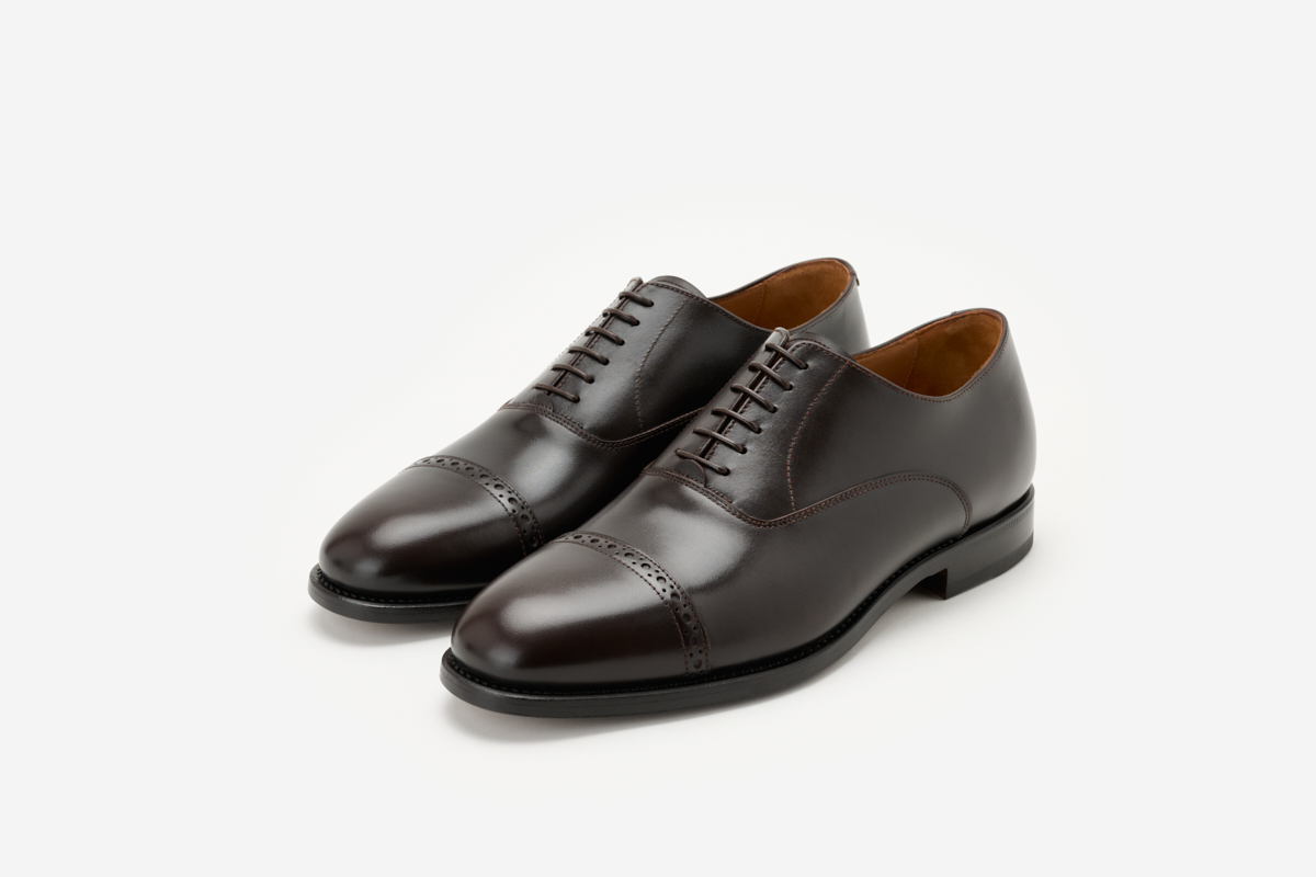 Stringata classica da uomo in pelle di vitello spazzolata con colorazione nero opaca. Questa calzatura è caratterizzata dallo stile raffinato ed elegante; le cuciture in punta impreziosiscono questo modello classico, realizzato a mano in Italia dai nostri artigiani.