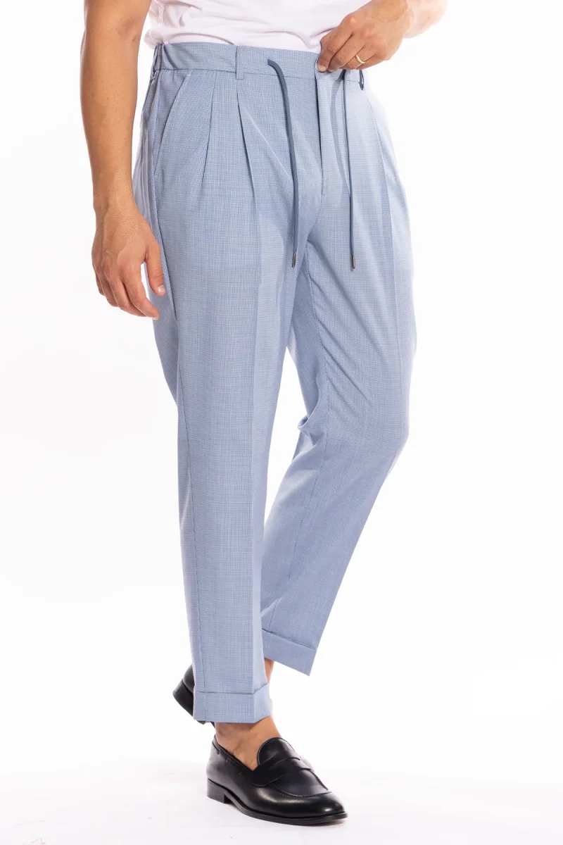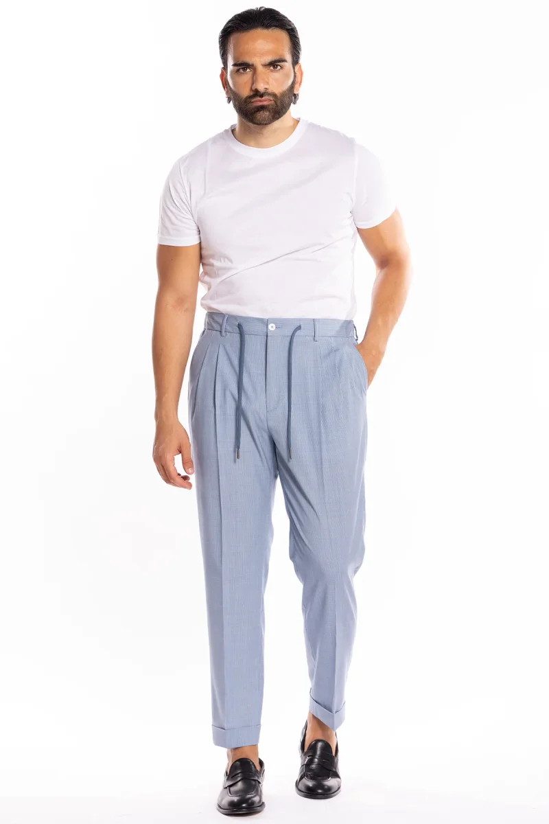 PANTALACCIO DA UOMO CAMMELLO DOPPIA PINCES IN MISTO FRESCO LANA TASCA AMERICA RISVOLTO 5CM CON LACCIO REGOLABILE