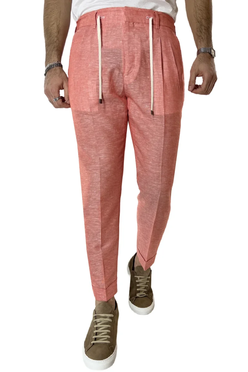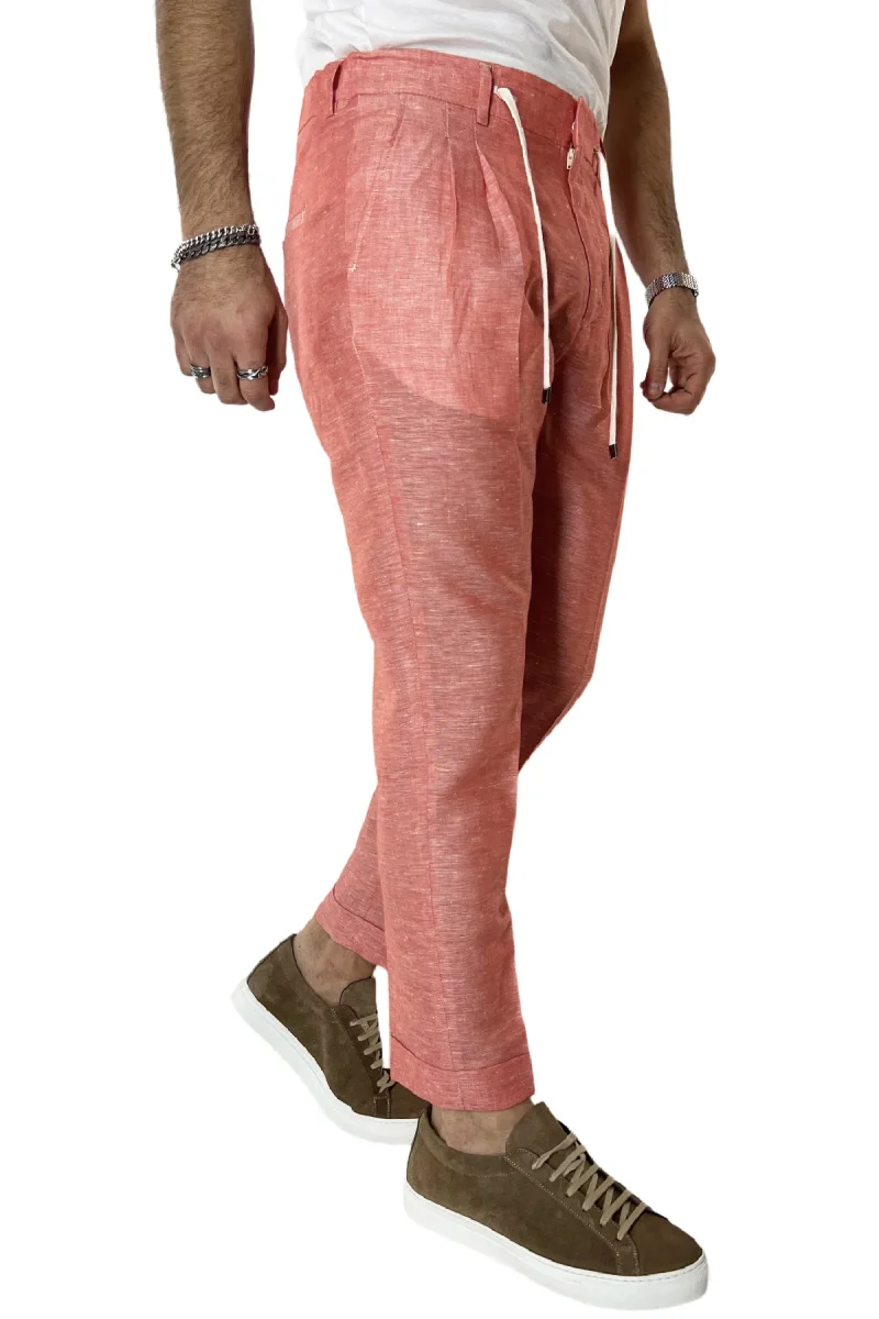 Pantalaccio uomo arancio in lino e cotone