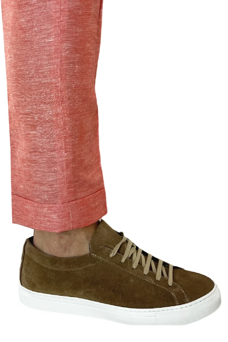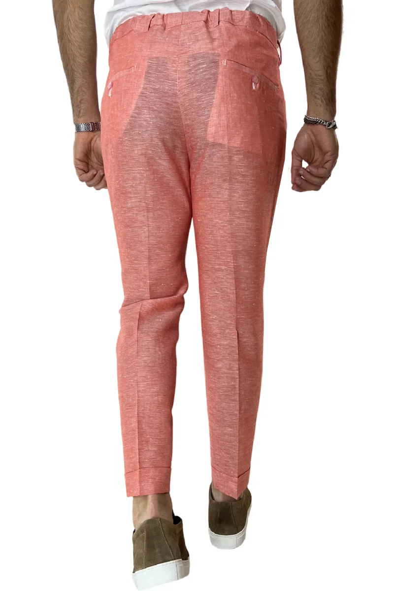 Il Pantalaccio uomo arancio in lino e cotone tasca america con doppia pence e laccio in vita risvolto 4cm di CARILLO MODA e ormai per i nostri clienti sinonimo di garanzia e qualita. Questo modello, viene scelto da una tipologia di persone che amano vestire bene e nello stesso tempo scelgono la comodita. Infatti grazie alle caratteristiche del tessuto e delle pences permette a chi lo indossa di scegliere la sua misura perfetta e non preoccuparsi delle limitazioni dei movimenti nonostante la sua vestibilita’ slim.