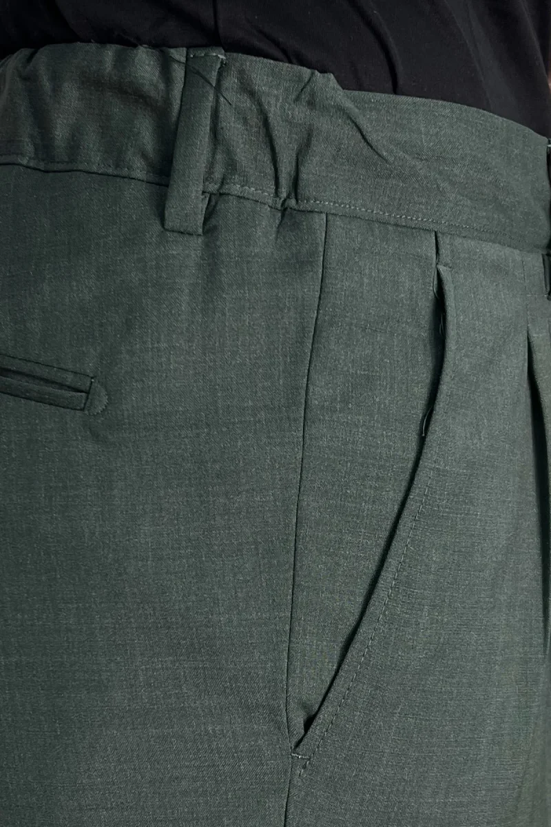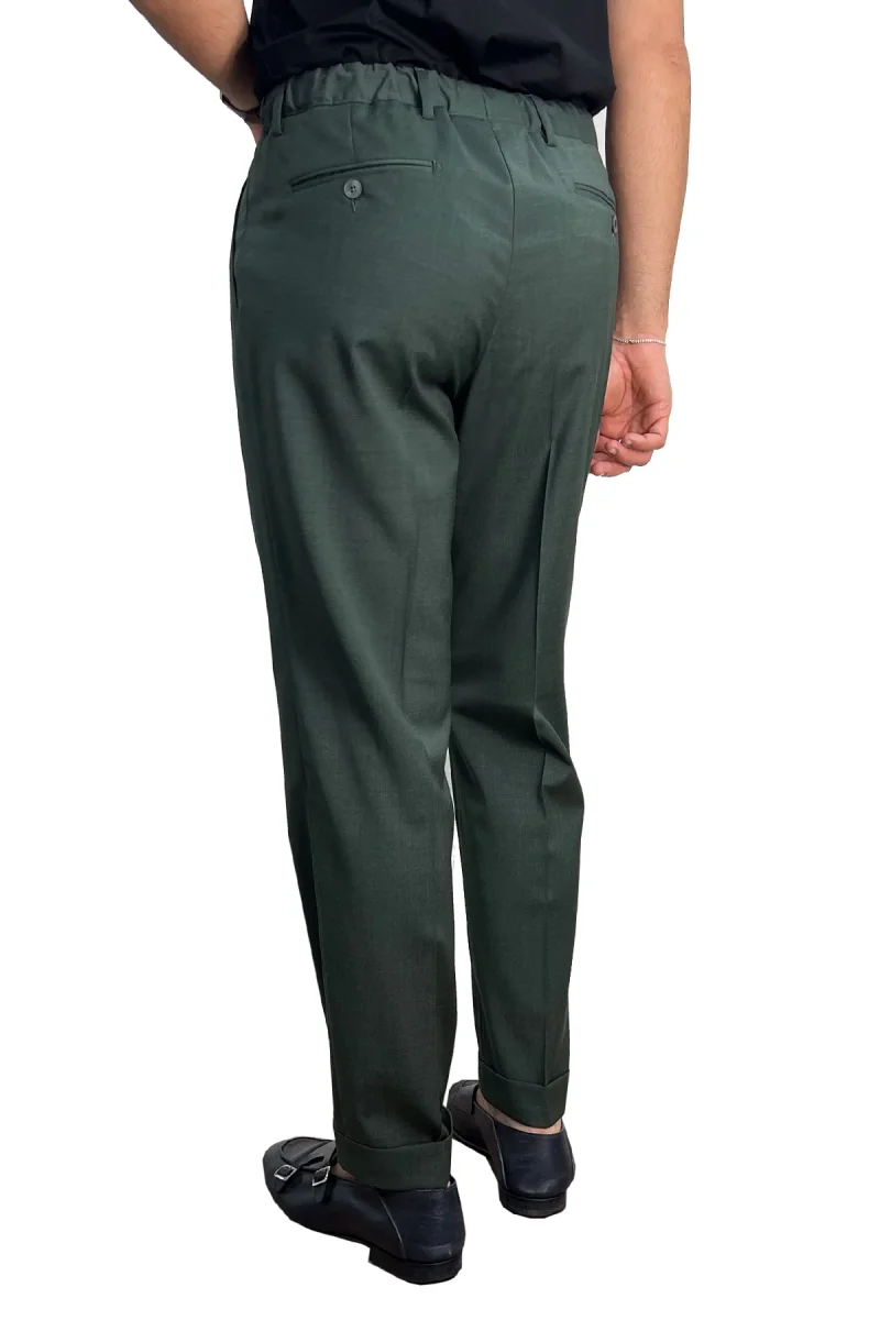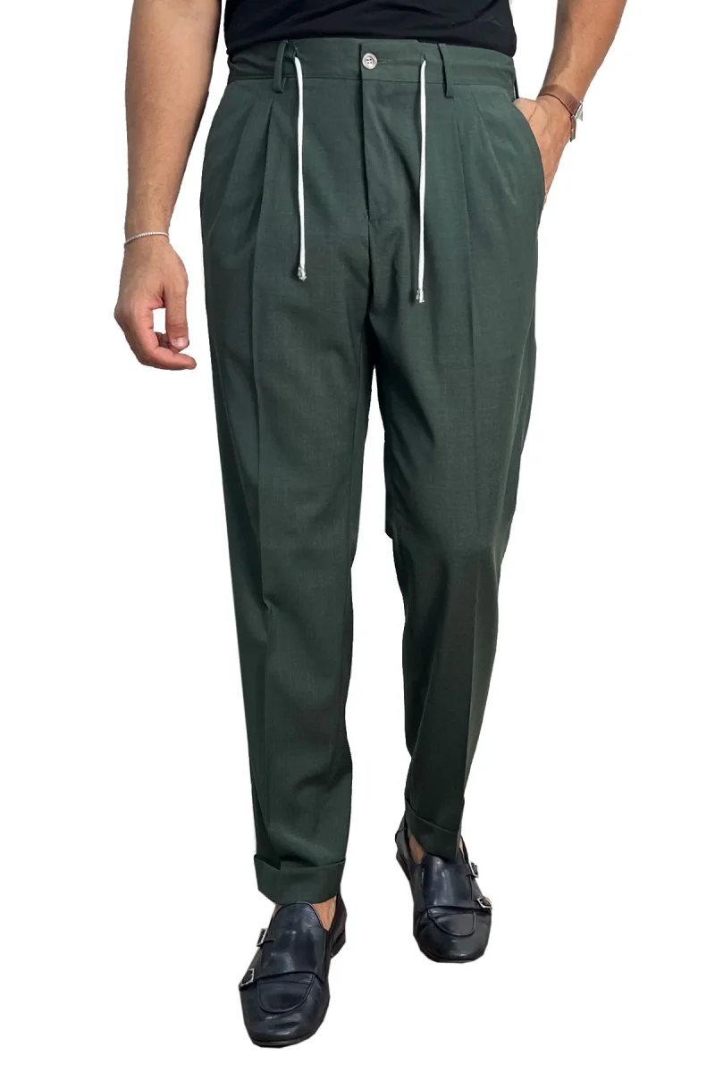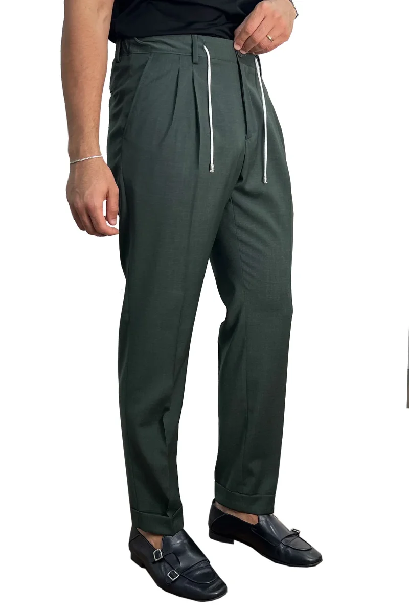Pantalaccio uomo verde fresco lana misto made in italy tasca america con doppia pence e laccio in vita risvolto 5cm