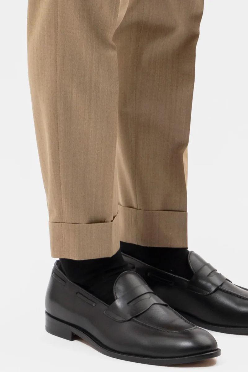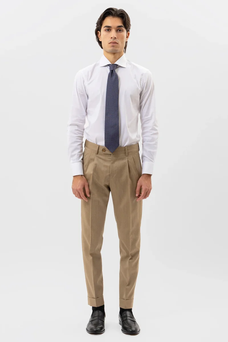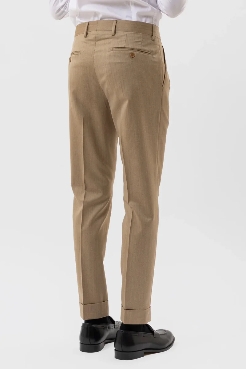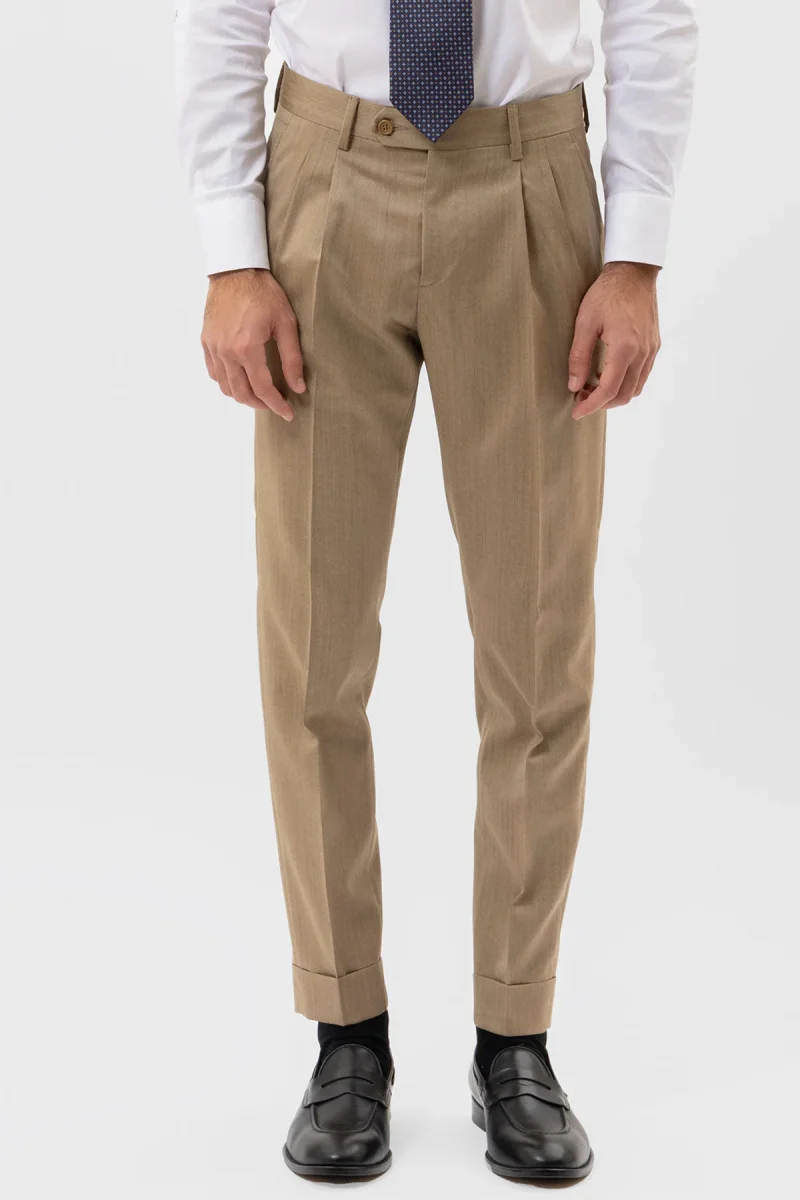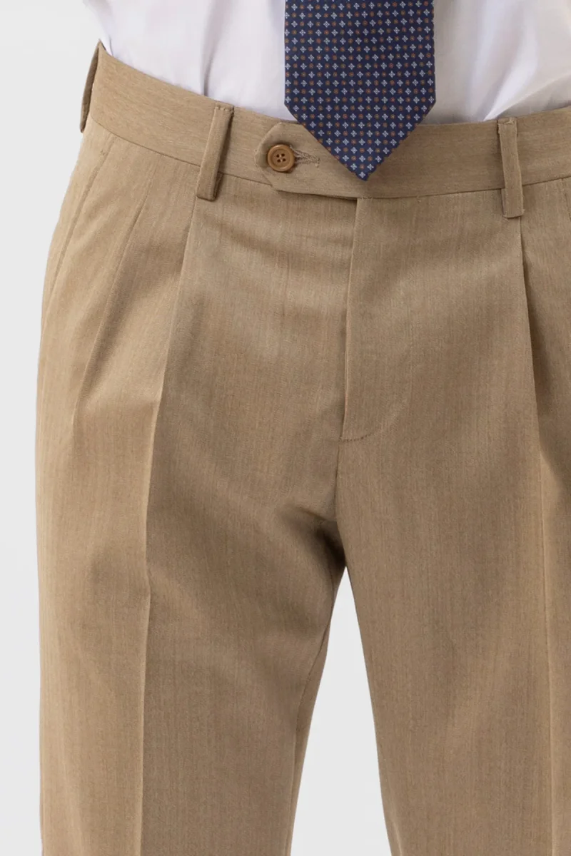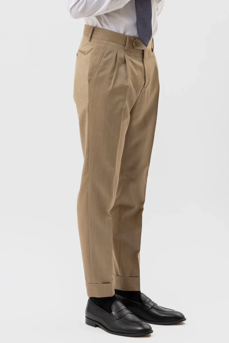PANTALONE BEIGE SOLARO VITA ALTA UOMO IN FRESCO LANA VITALE BARBERIS CANONICO CON FIBBIE LATERALI E RISVOLTO 5CM