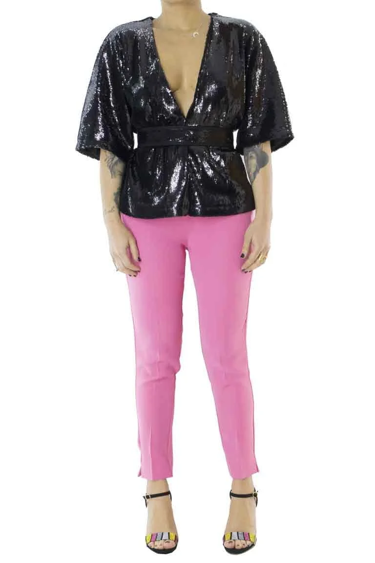 Pantalone capri donna estivo elegante vestibilita slim fit con tasca america e spacchi sul fondo, tinta unita, made in italy.