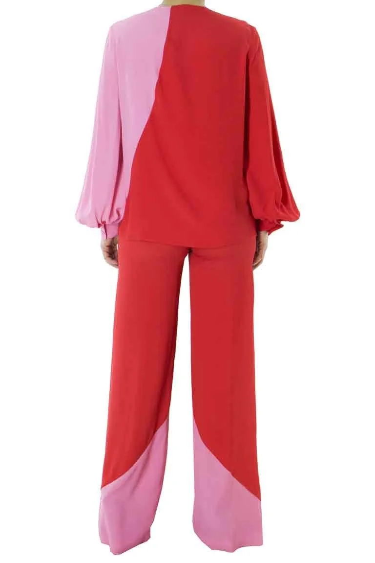Pantalone a palazzo donna estivo vita alta bicolore rosso rosa in seta tasca america made in italy