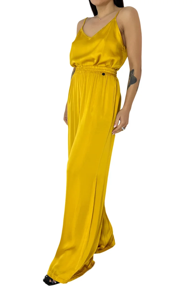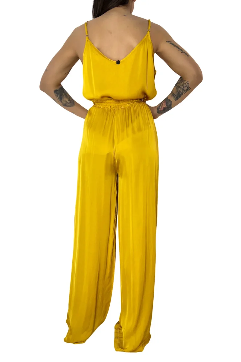 Pantalone donna in viscosa vita alta bustino elasticizzato gamba ampia