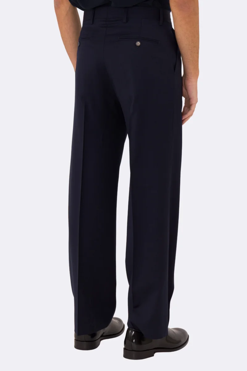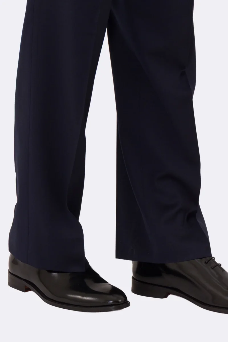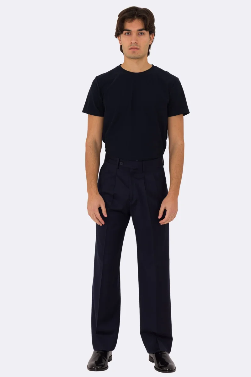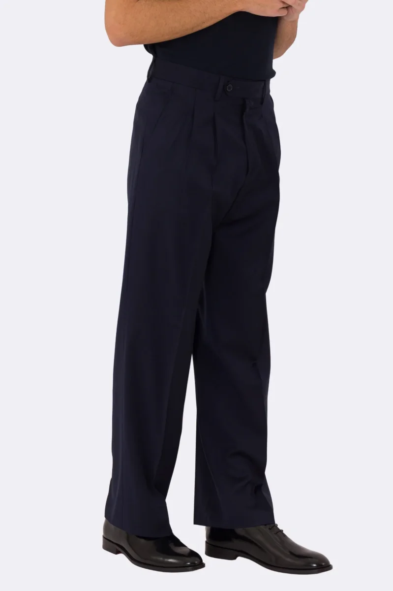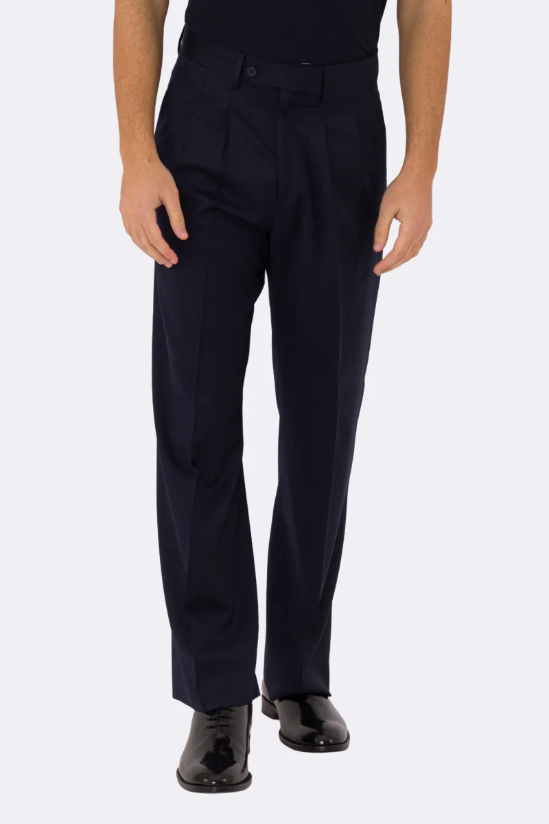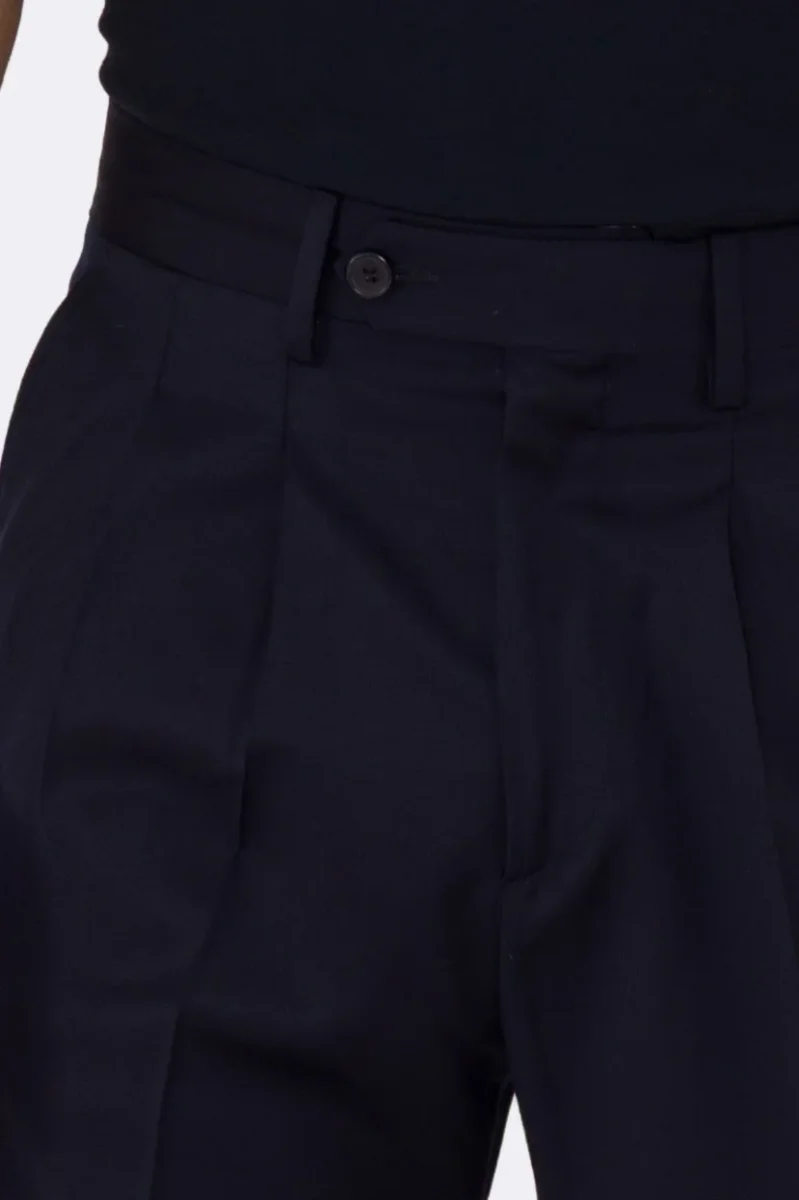 Pantalone japan blu navy con passanti uomo in fresco lana super 110’s Tessuti in esclusiva Sartoria Carillo vita alta doppia pinces