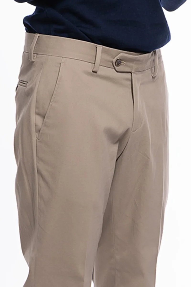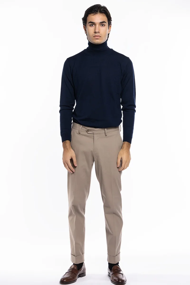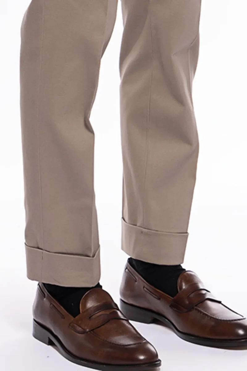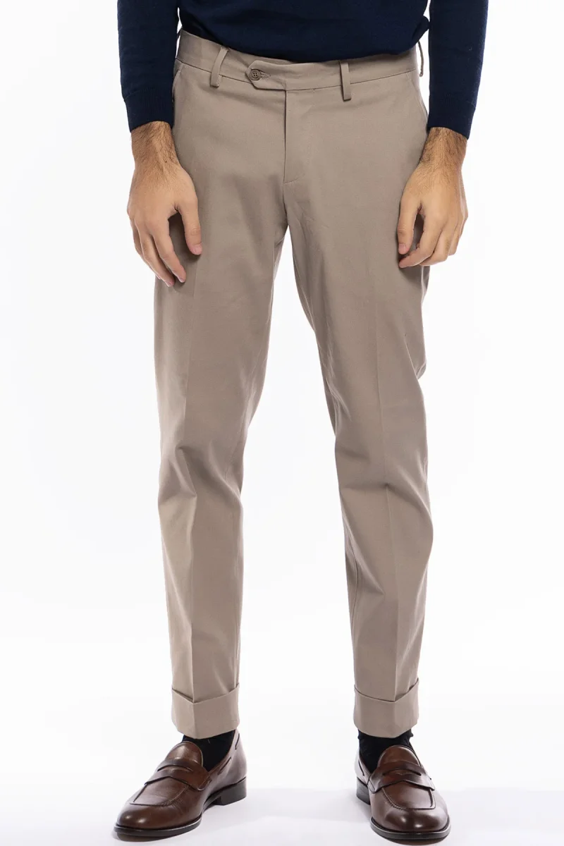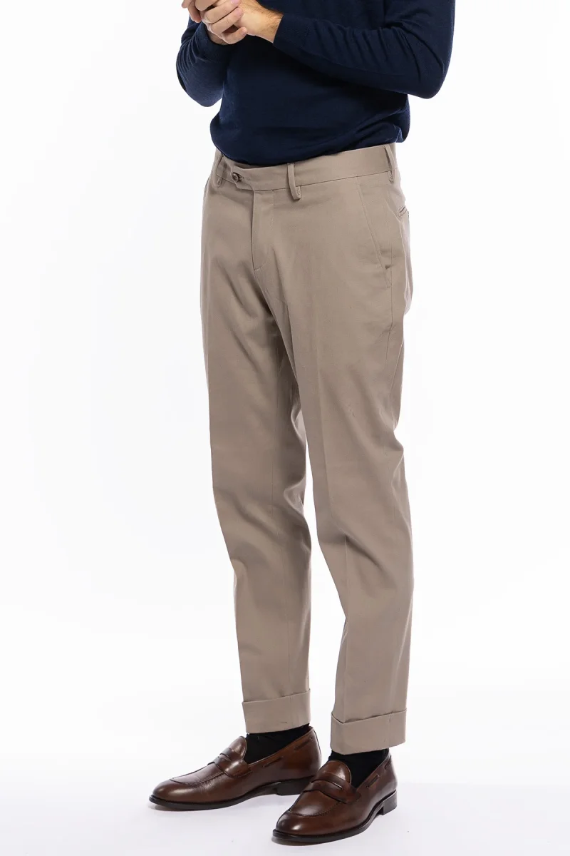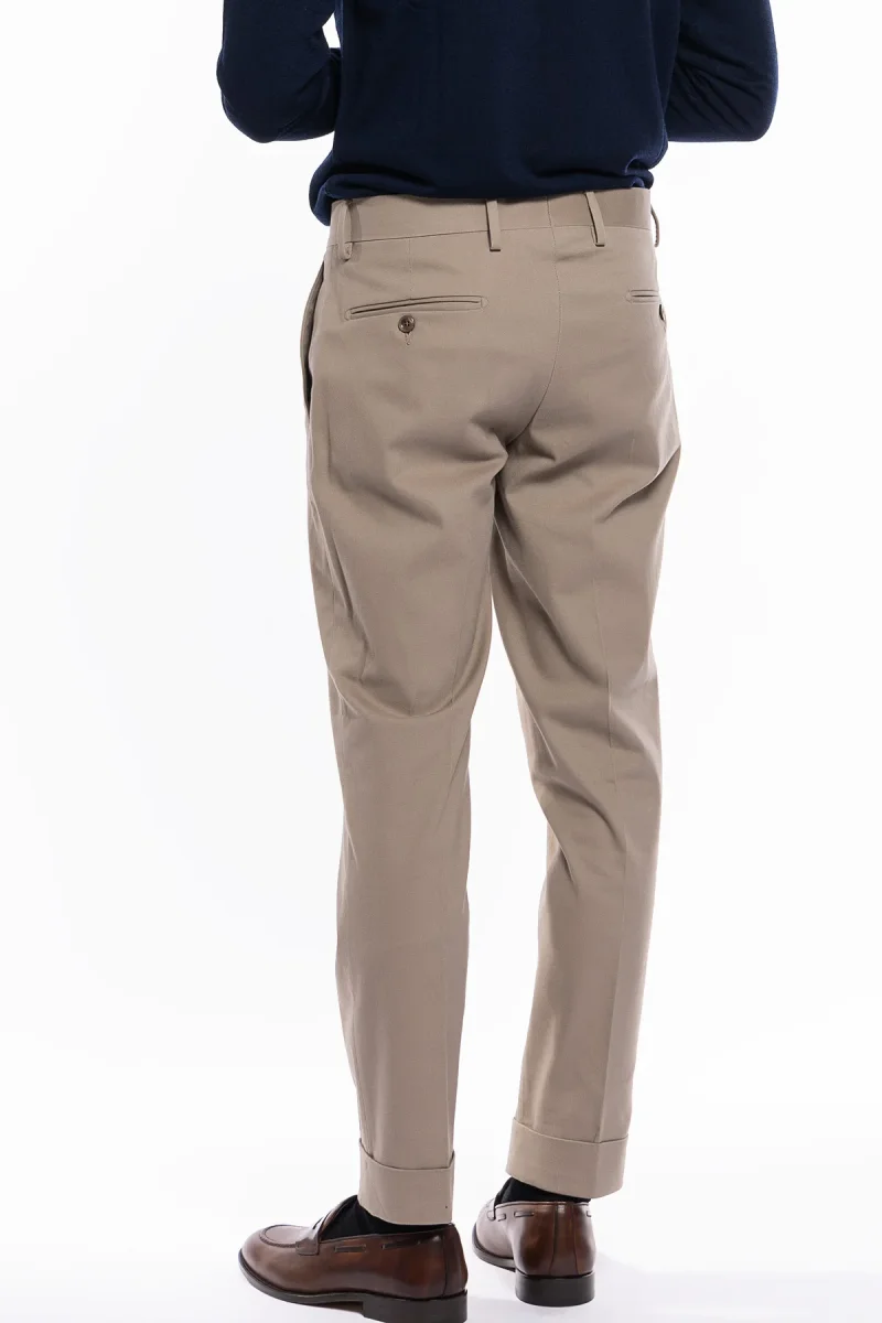 PANTALONE UOMO BEIGE TASCA AMERICA IN COTONE SLIM FIT CON RISVOLTO DI 5CM