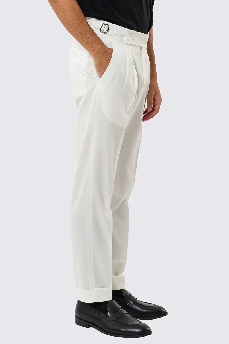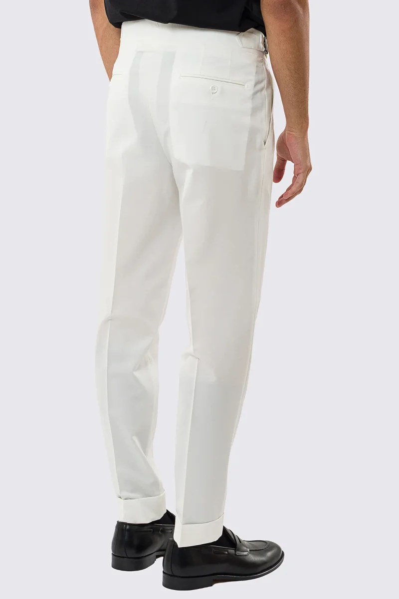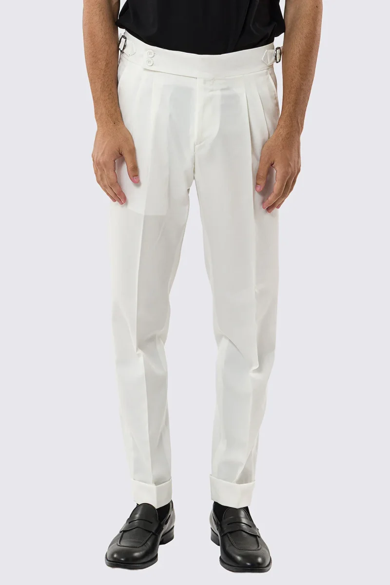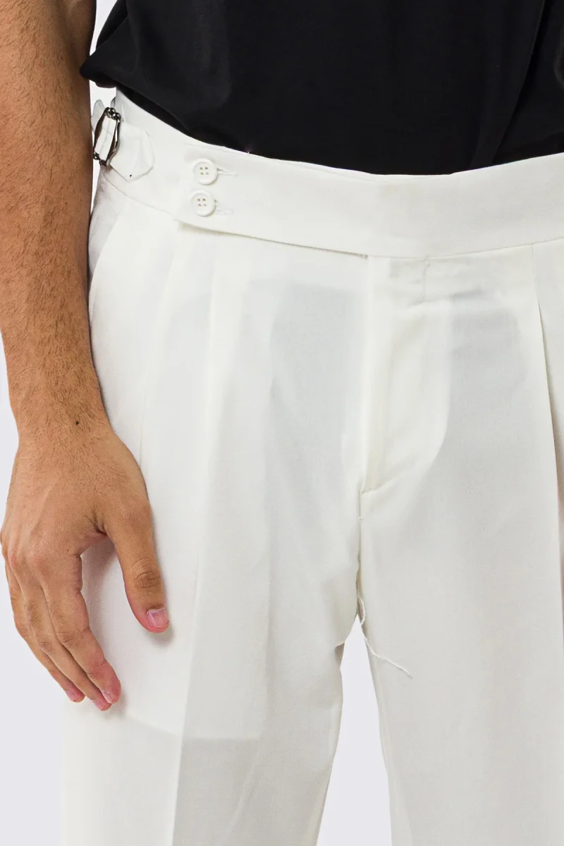 Pantalone uomo bianco vita alta effetto fresco lana: purezza sartoriale