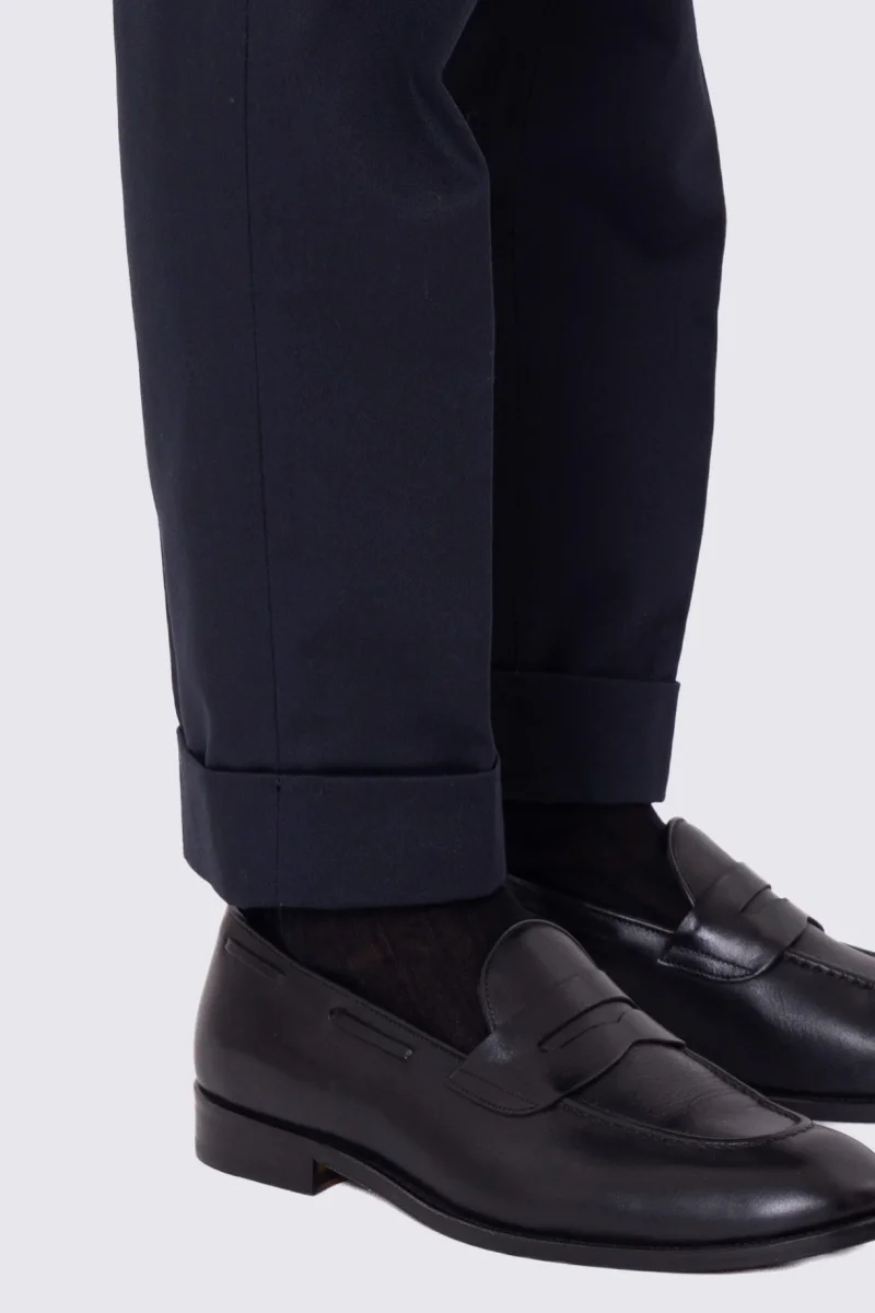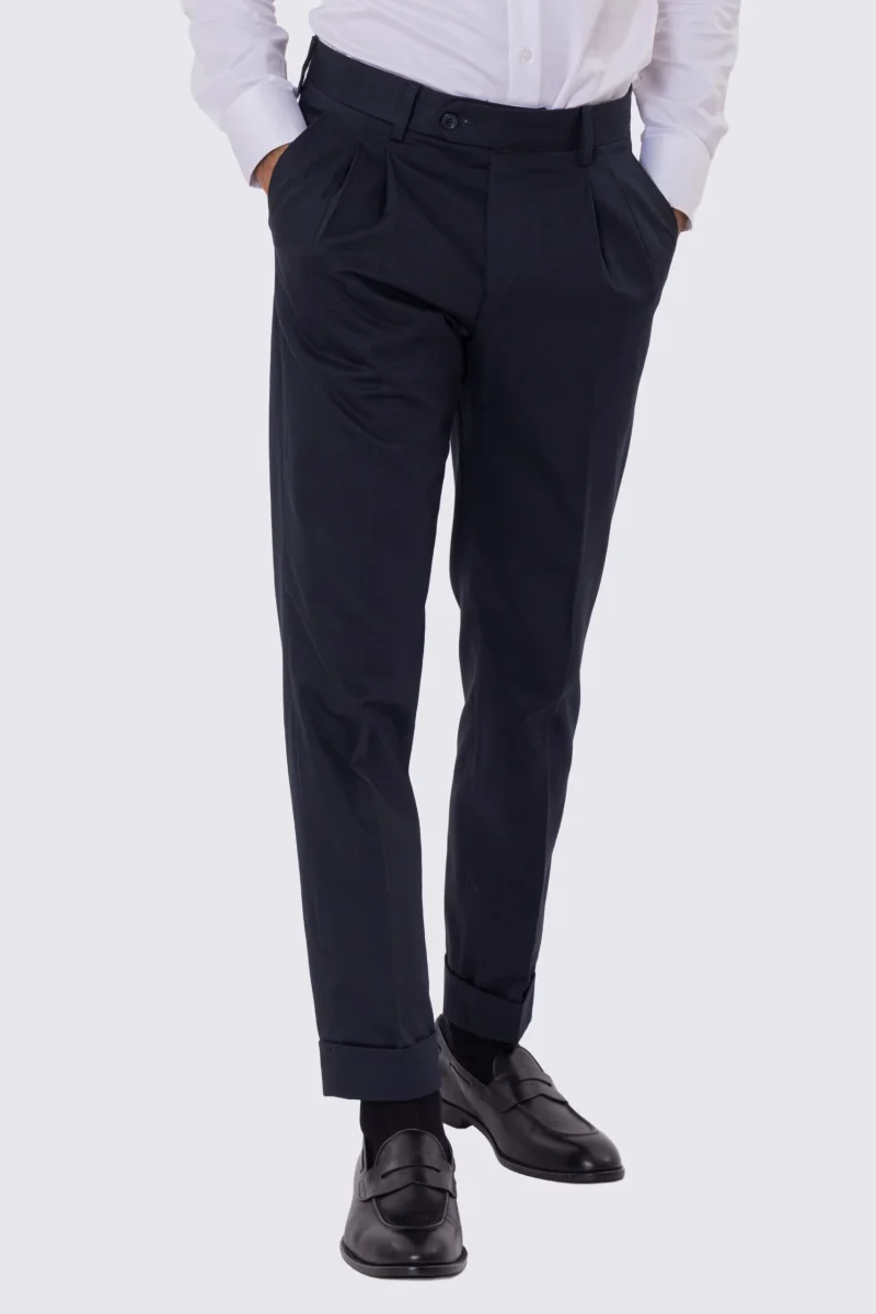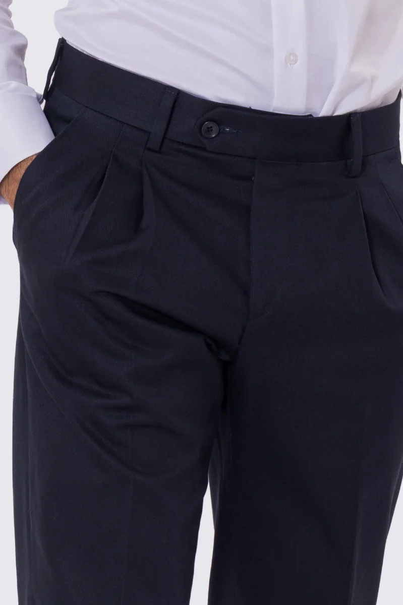 Pantalone uomo Blu vita alta con doppia pinces tasca america in cotone 290gr invernale risvolto 5cm made in italy