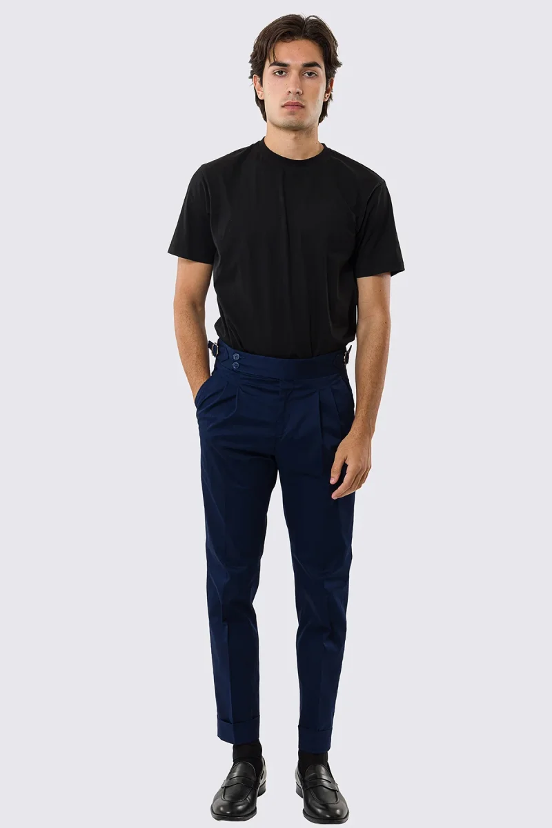 Pantalone uomo blu vita alta: stile sartoriale e versatilità