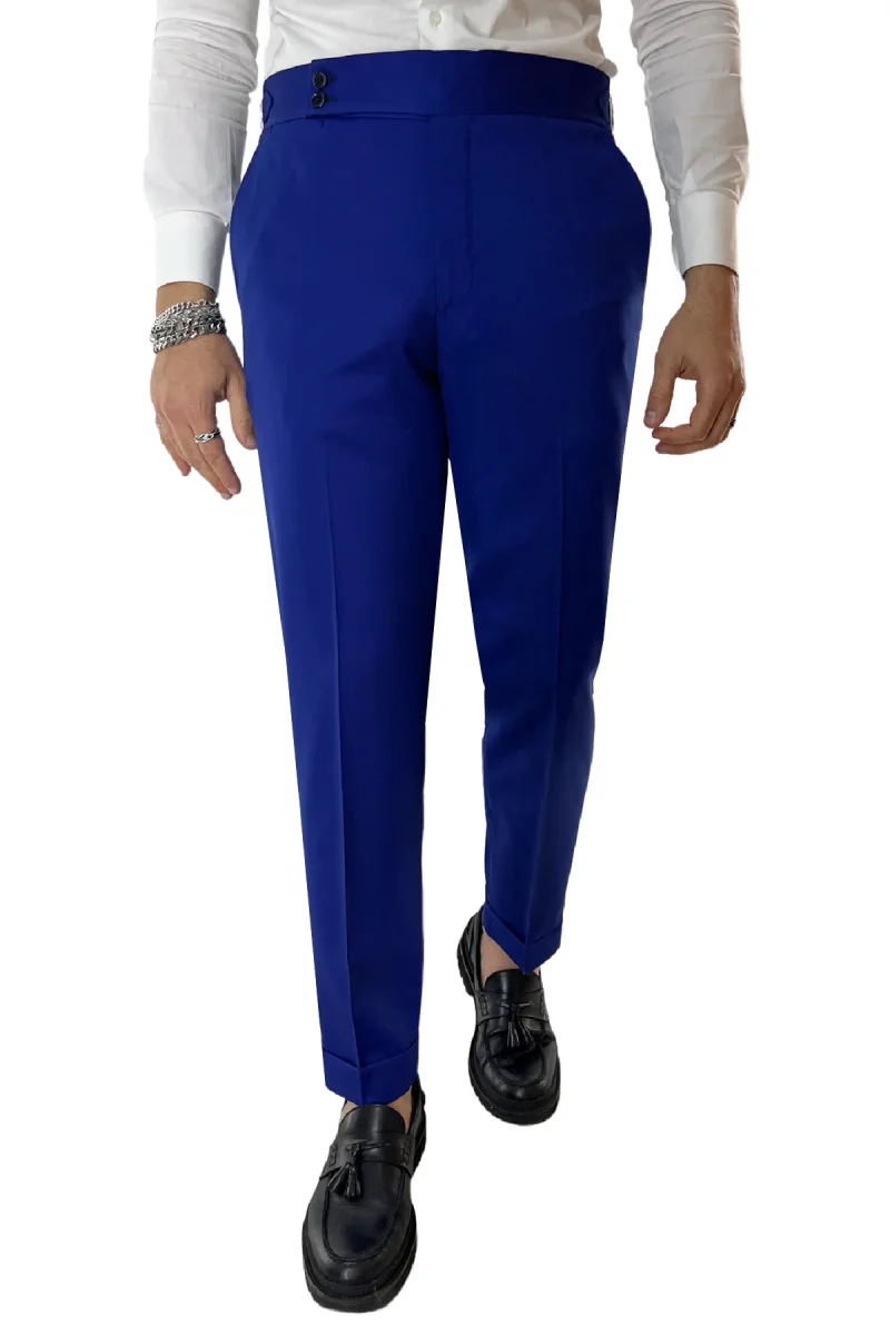 Il Pantalone uomo bluette vita alta tasca america in fresco lana 100% Vitale Barberis Canonico fibbie laterali e risvolto 4cm di CARILLO MODA e ormai per i nostri clienti sinonimo di garanzia e qualita. Questo modello, viene scelto da una tipologia di persone che amano vestire bene e nello stesso tempo scelgono la comodita. Infatti grazie alle caratteristiche del tessuto permette a chi lo indossa di scegliere la sua misura perfetta e non preoccuparsi delle limitazioni dei movimenti nonostante la sua vestibilita’ slim.