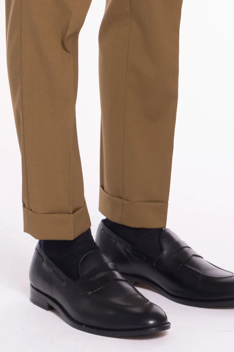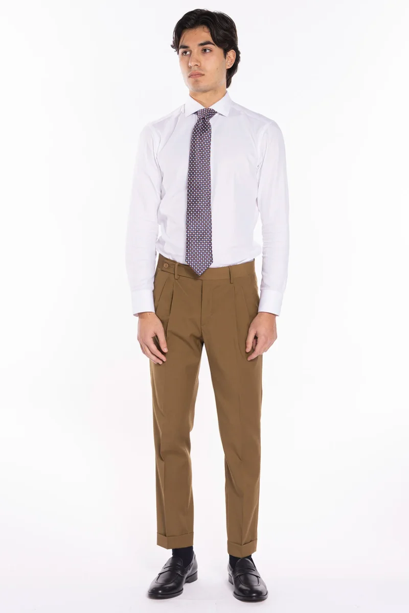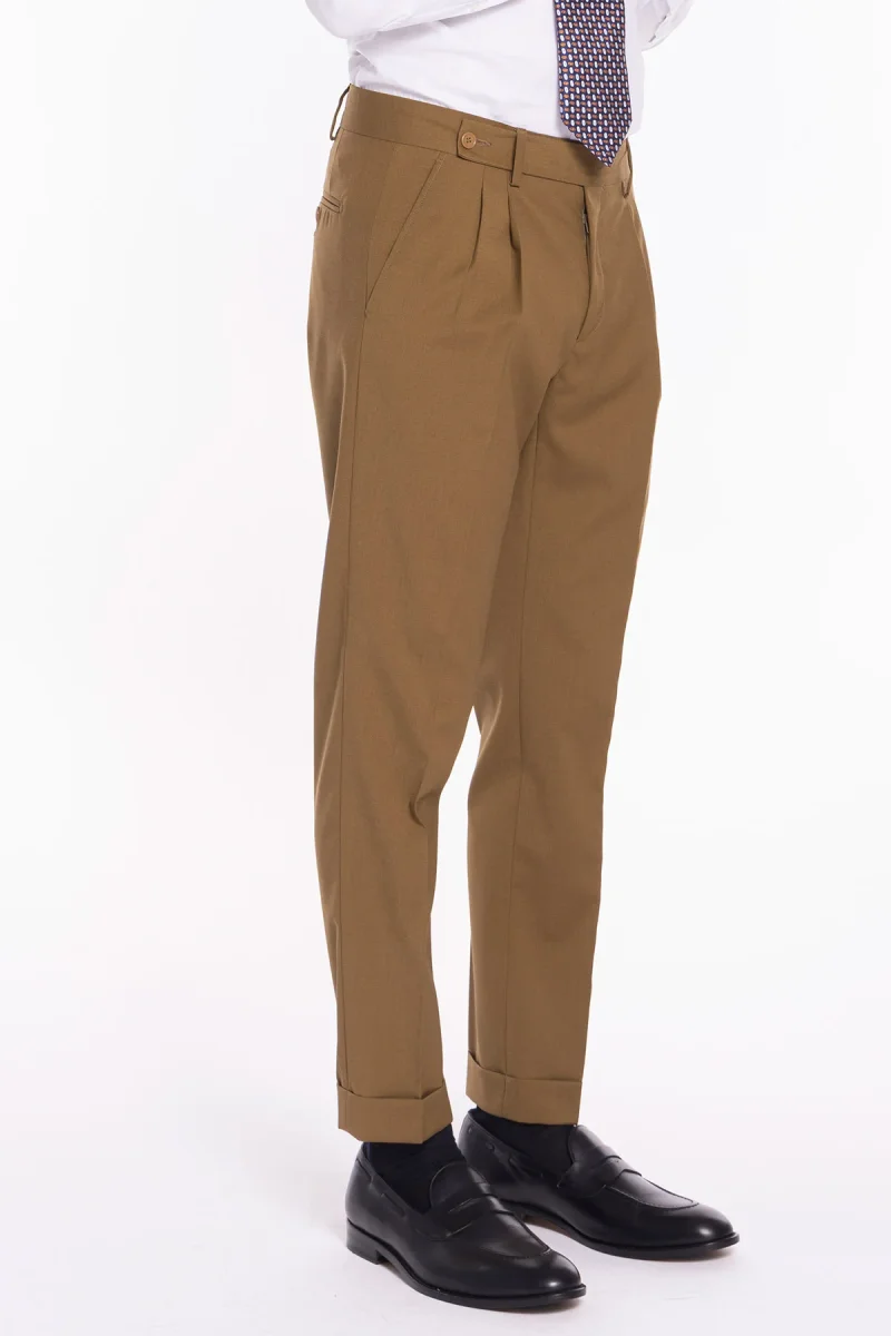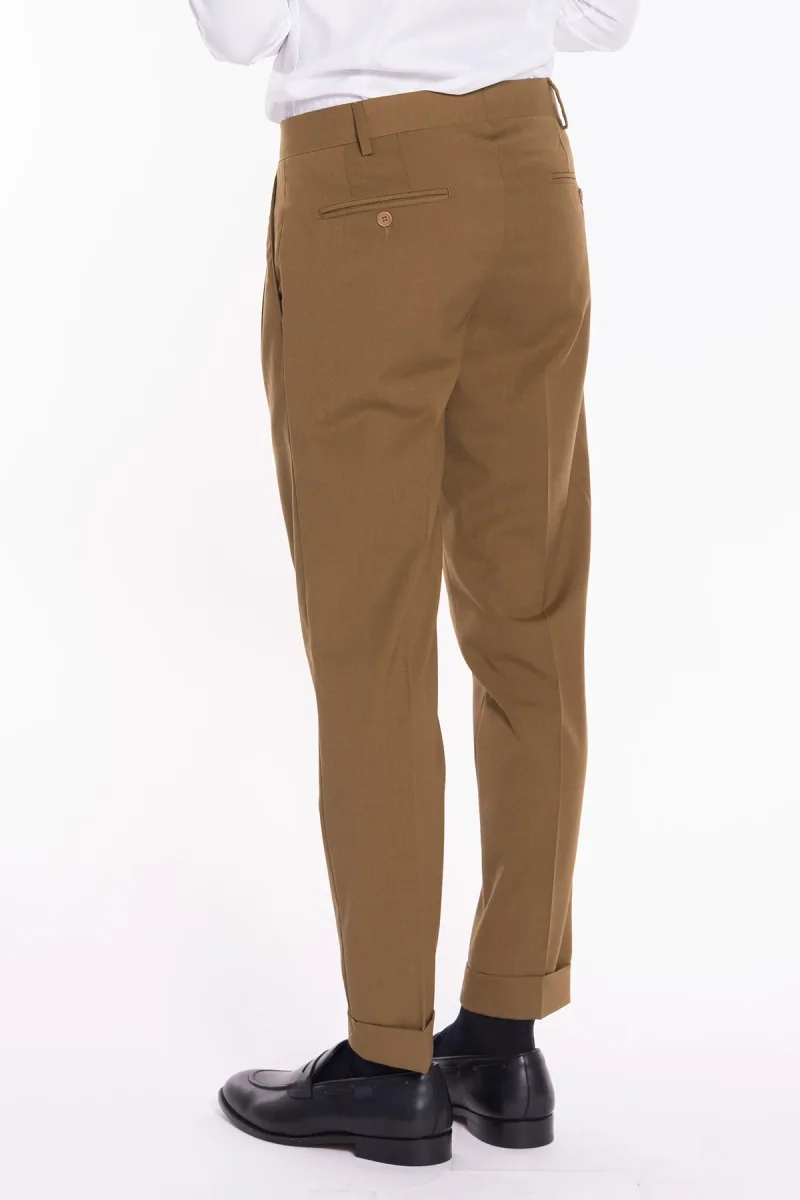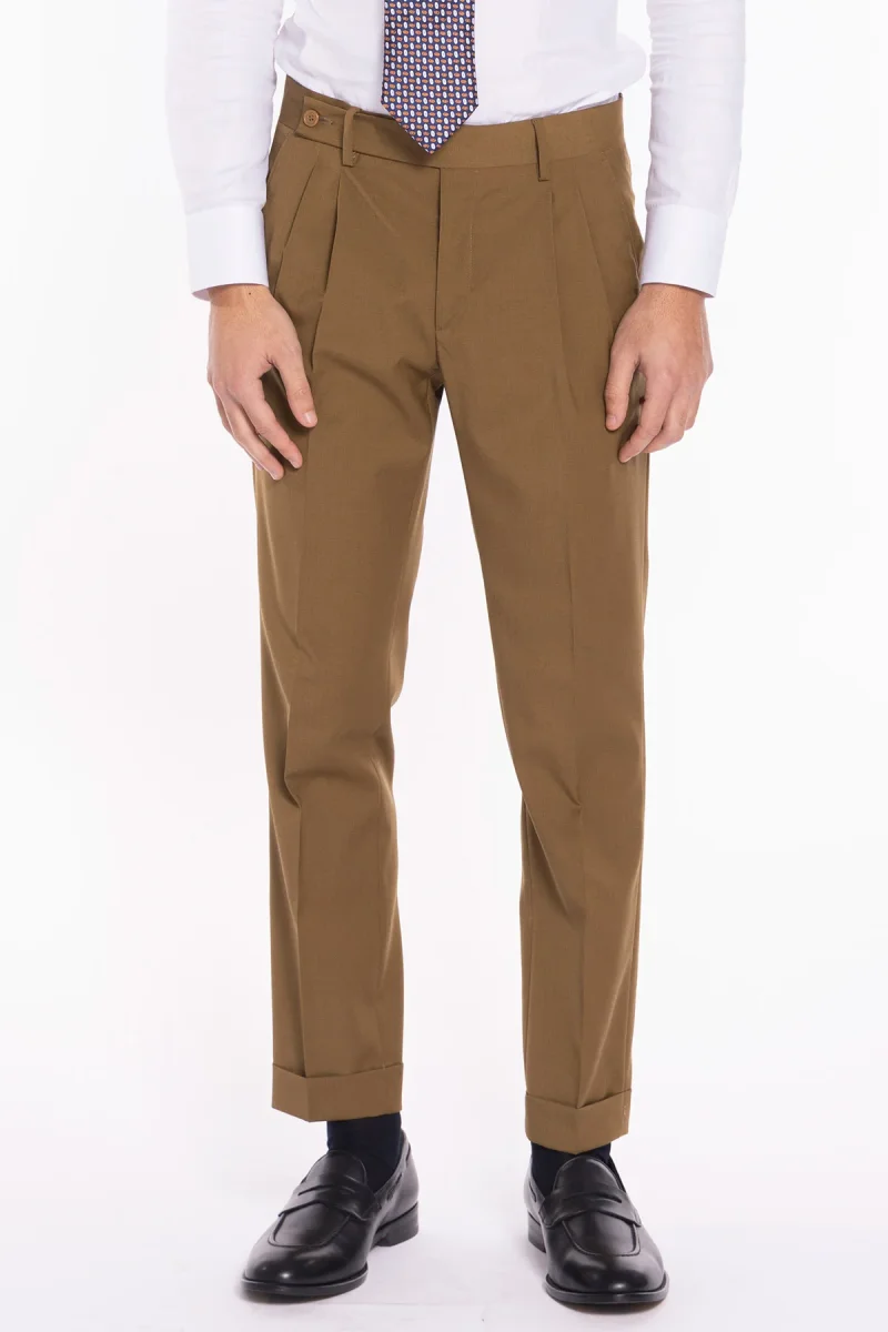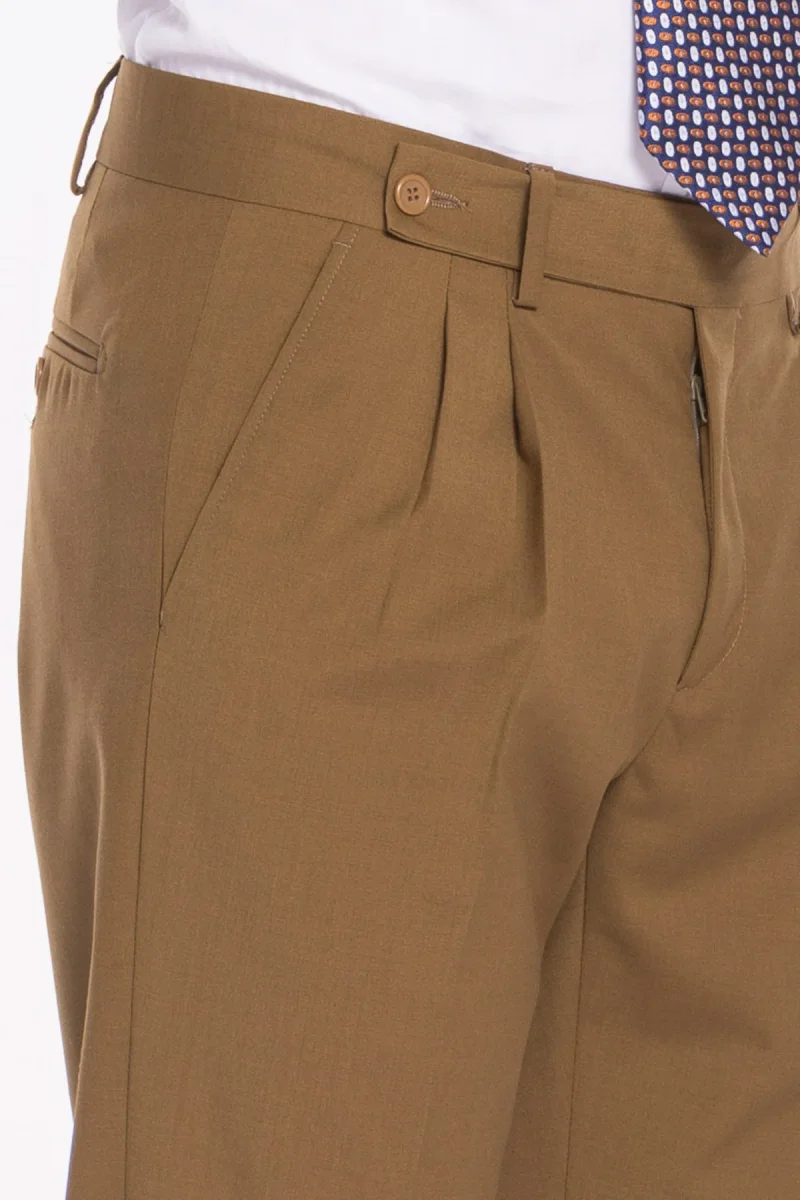 PANTALONE UOMO CAMMELLO CHIUSURA PROLUNGATA DOPPIA PINCES