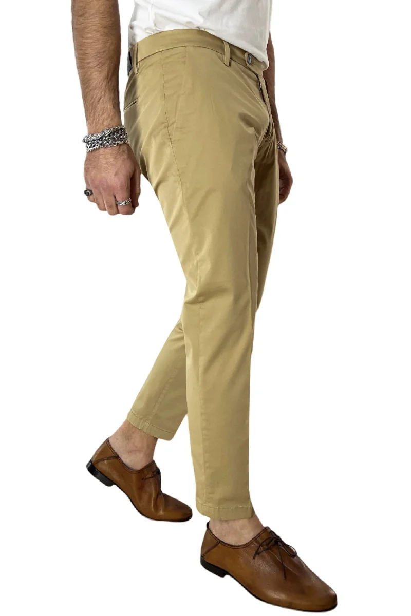 Pantalone uomo cammello in Cotone tasca america leggermente elastico estivo