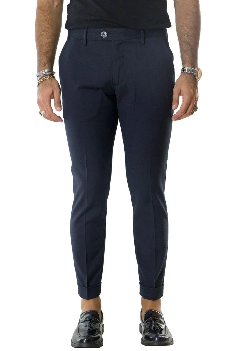 Pantalone uomo elegante slim fit tasca america invernale effetto lana elasticizzato con risvolto 4 cm fodera fantasia