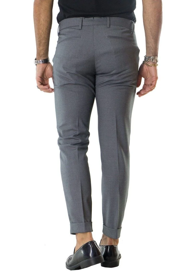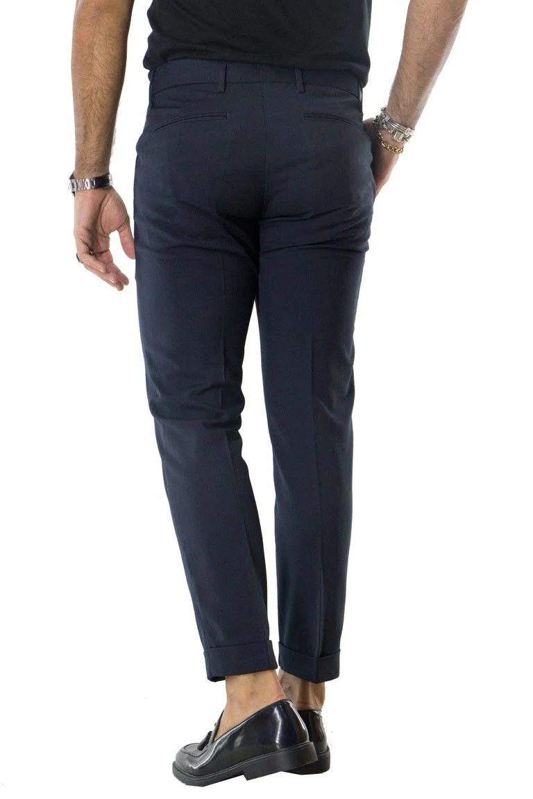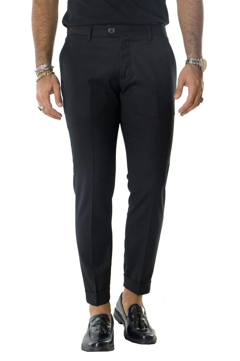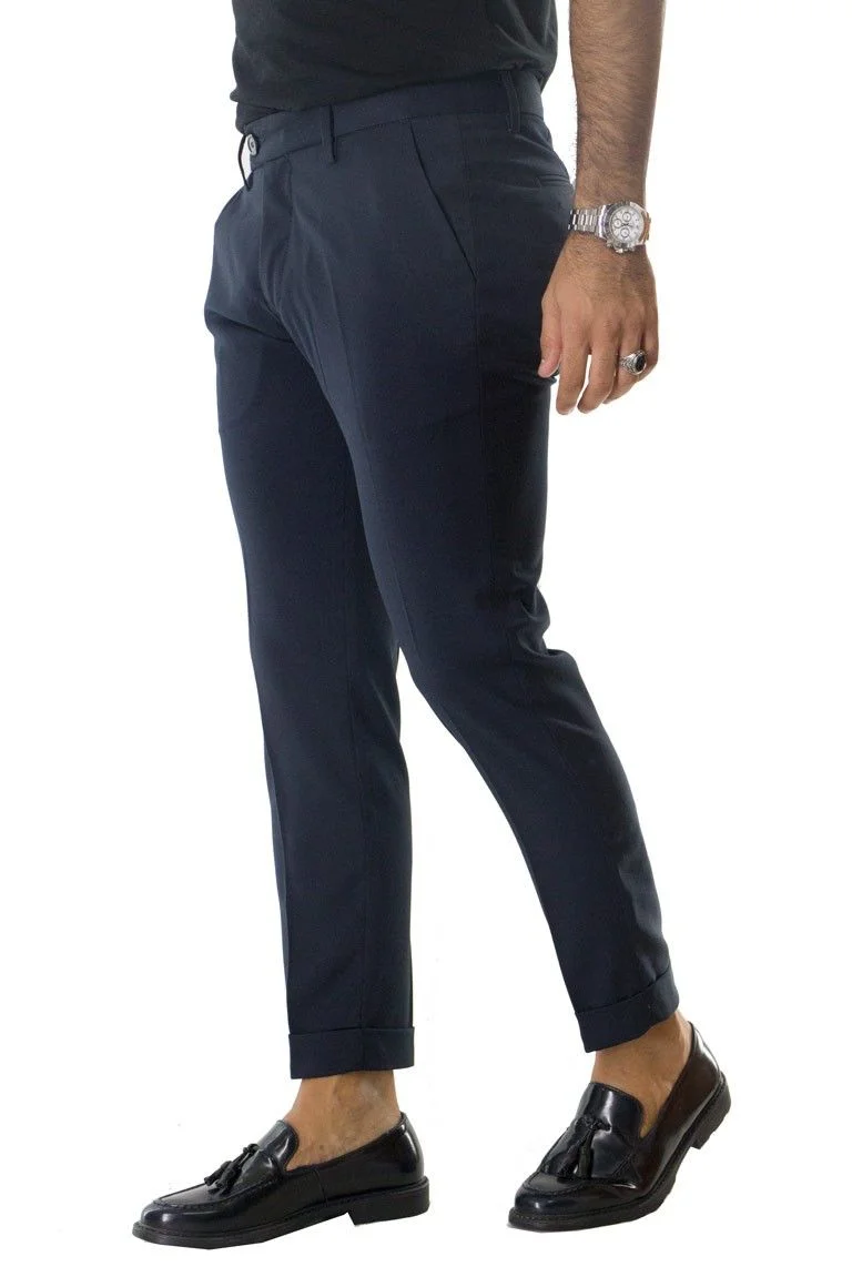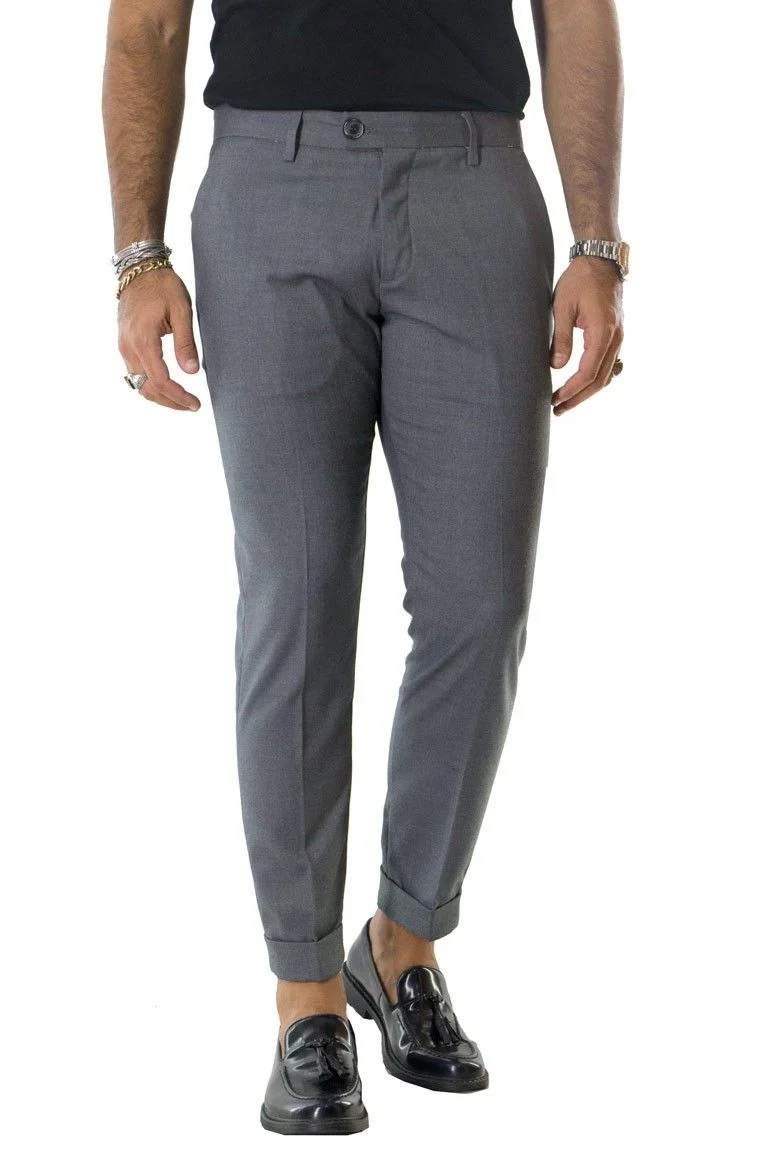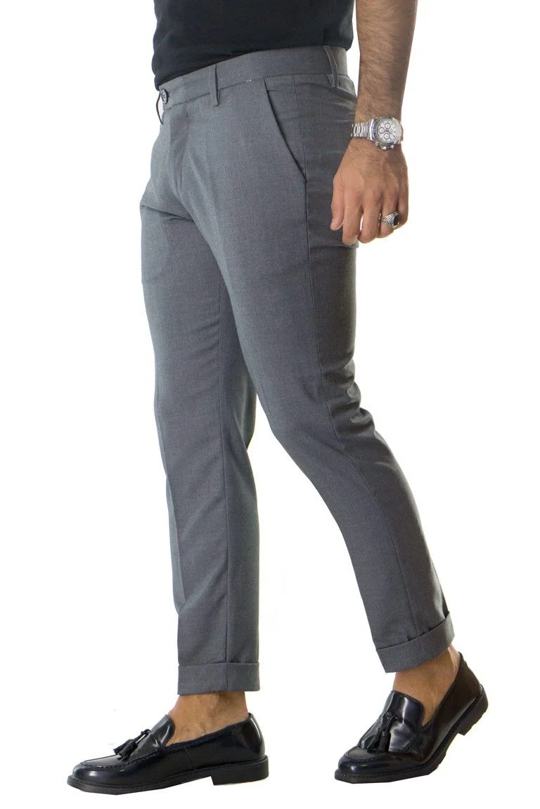 Pantalone uomo elegante slim fit tasca america invernale effetto lana elasticizzato con risvolto 4 cm fodera fantasia.