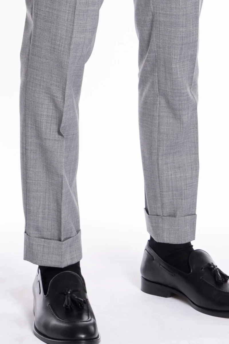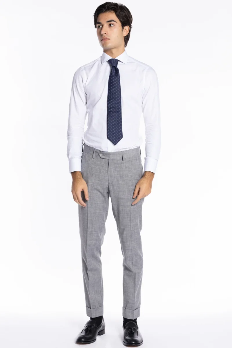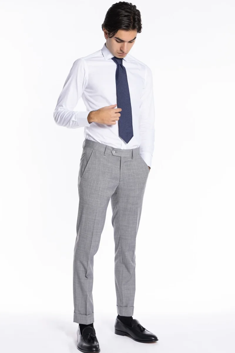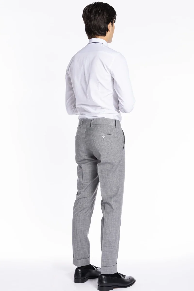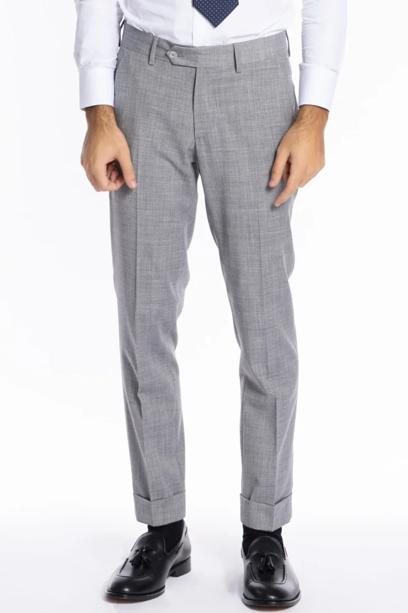 Pantalone uomo grigio chiaro TASCA AMERICA effetto fresco lana slim fit con risvolto di 5cm