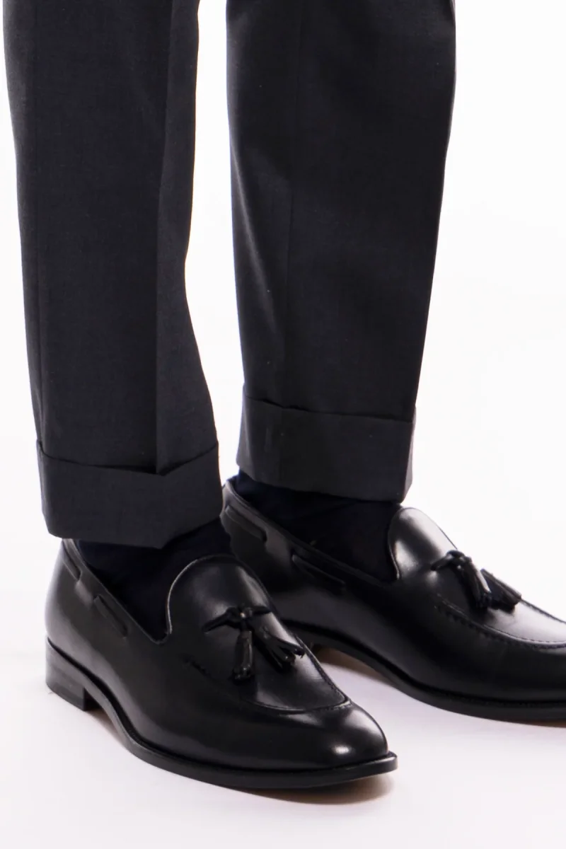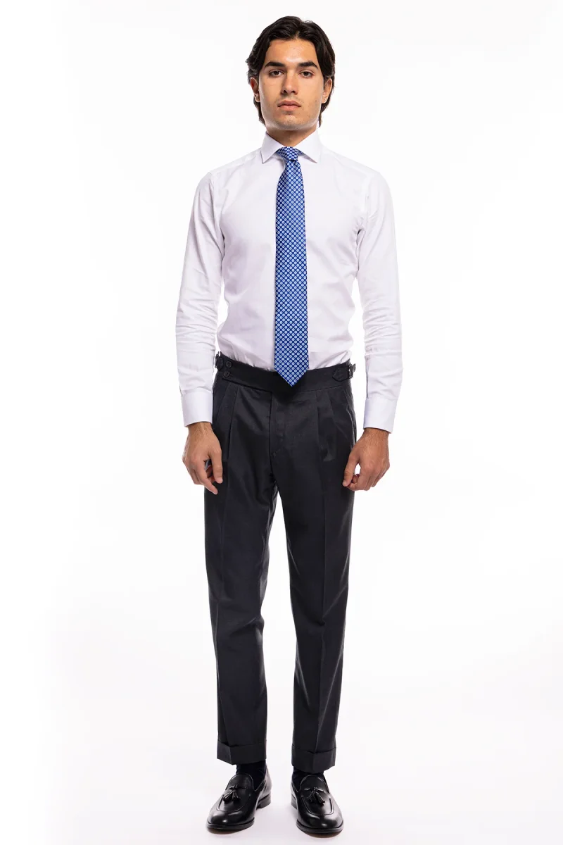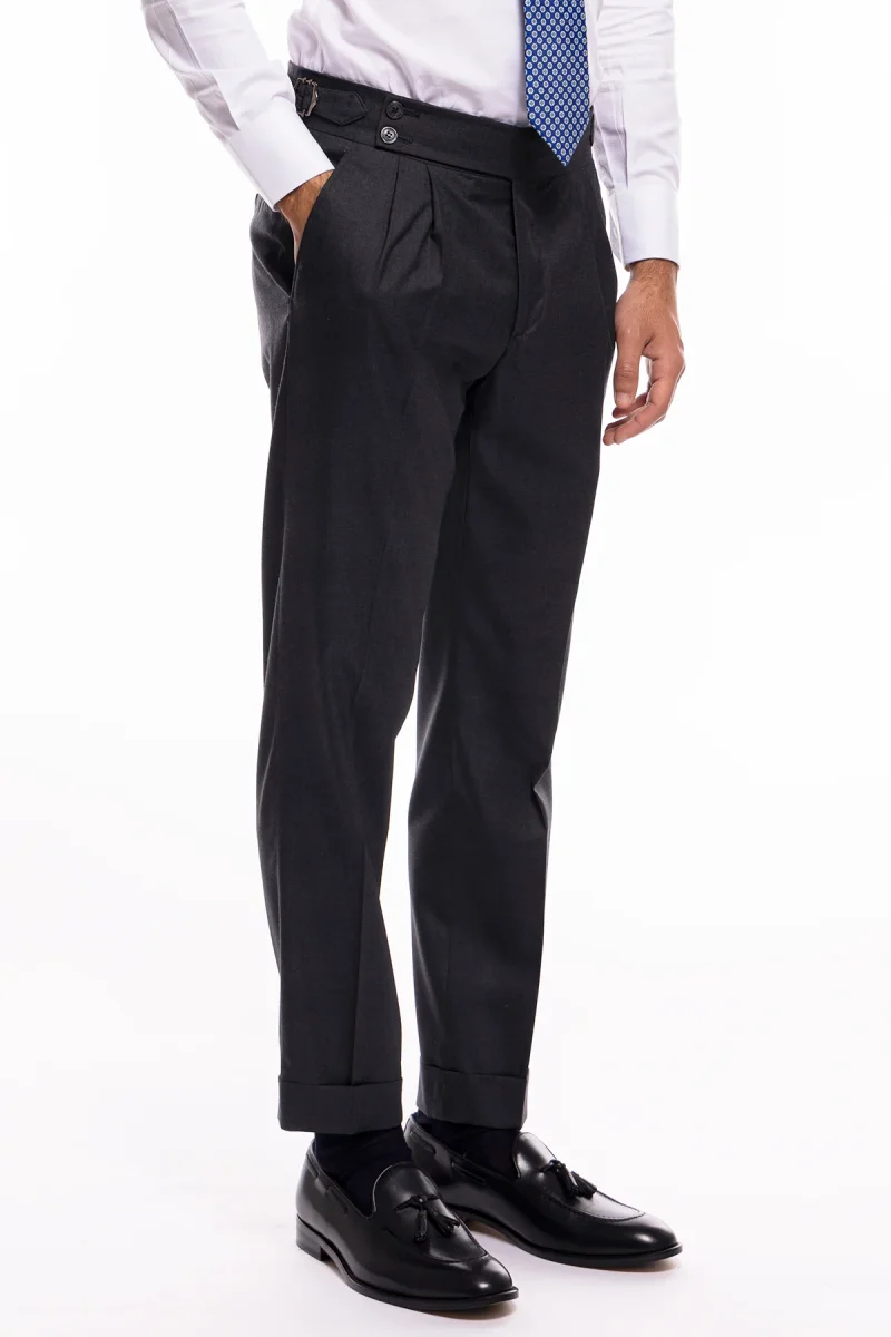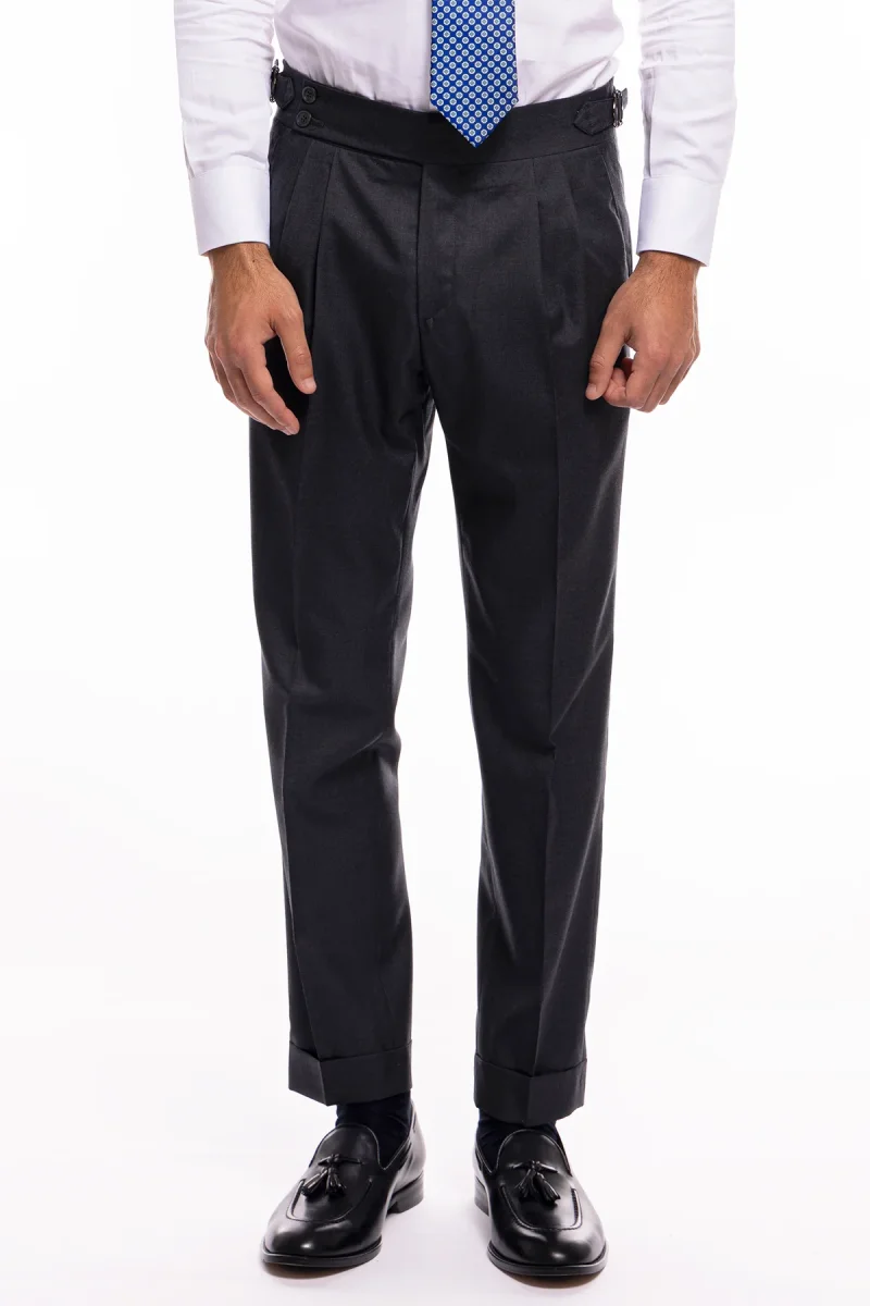 PANTALONE UOMO GRIGIO SCURO VITA ALTA DOPPIA PINCES