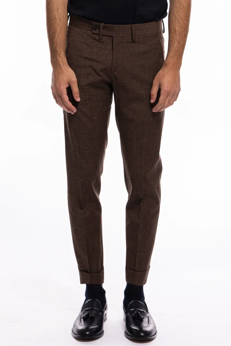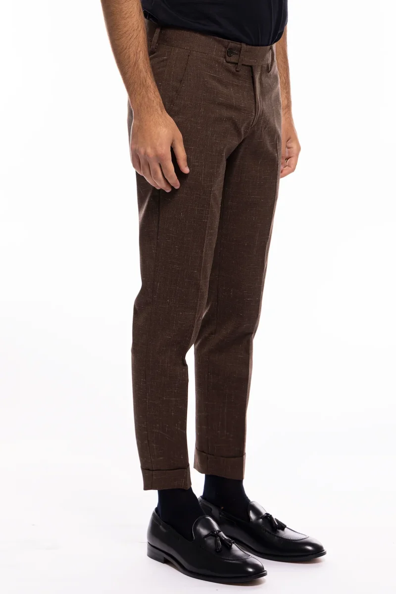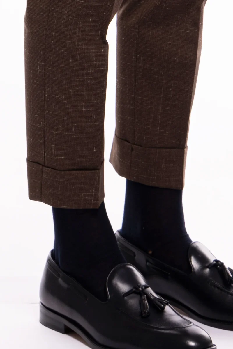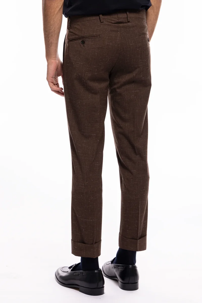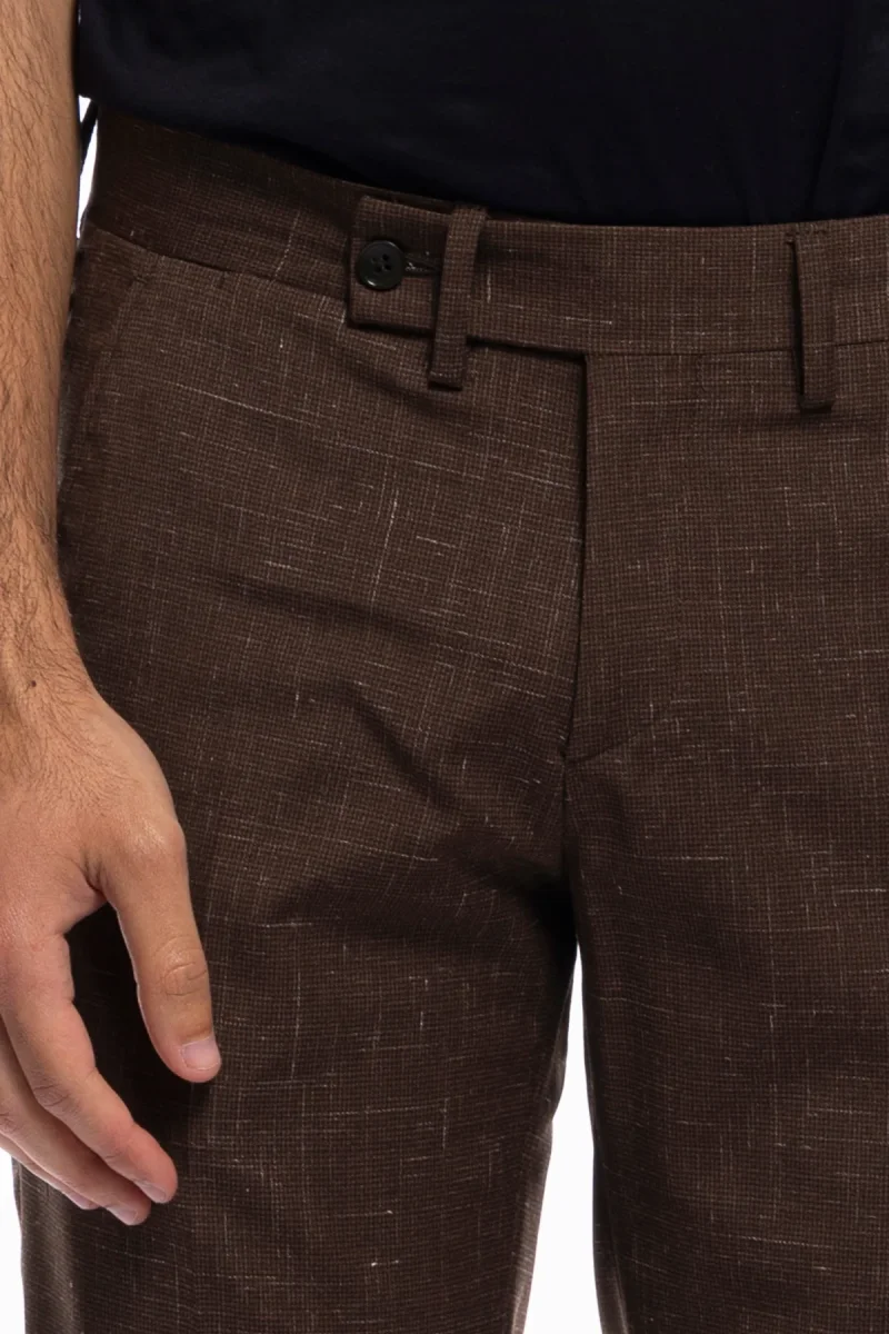 PANTALONE UOMO MARRONE PIED DE POULE TASCA AMERICA IN FRESCO LANA