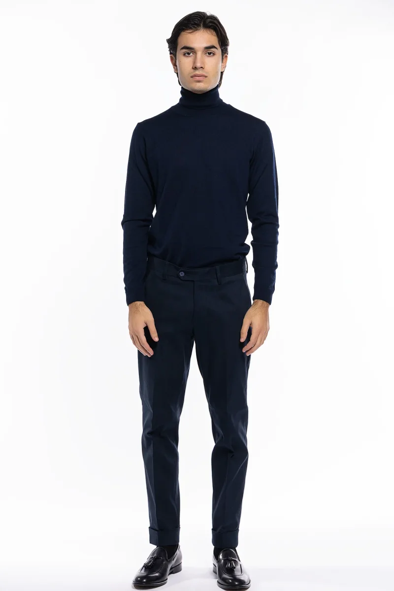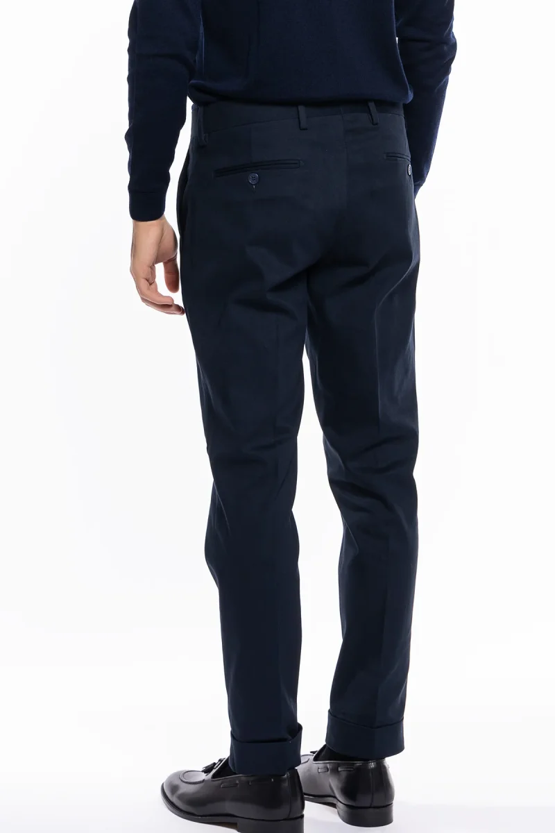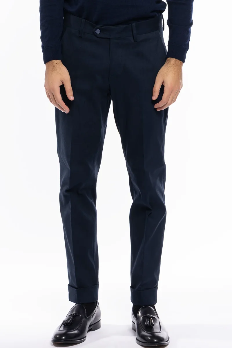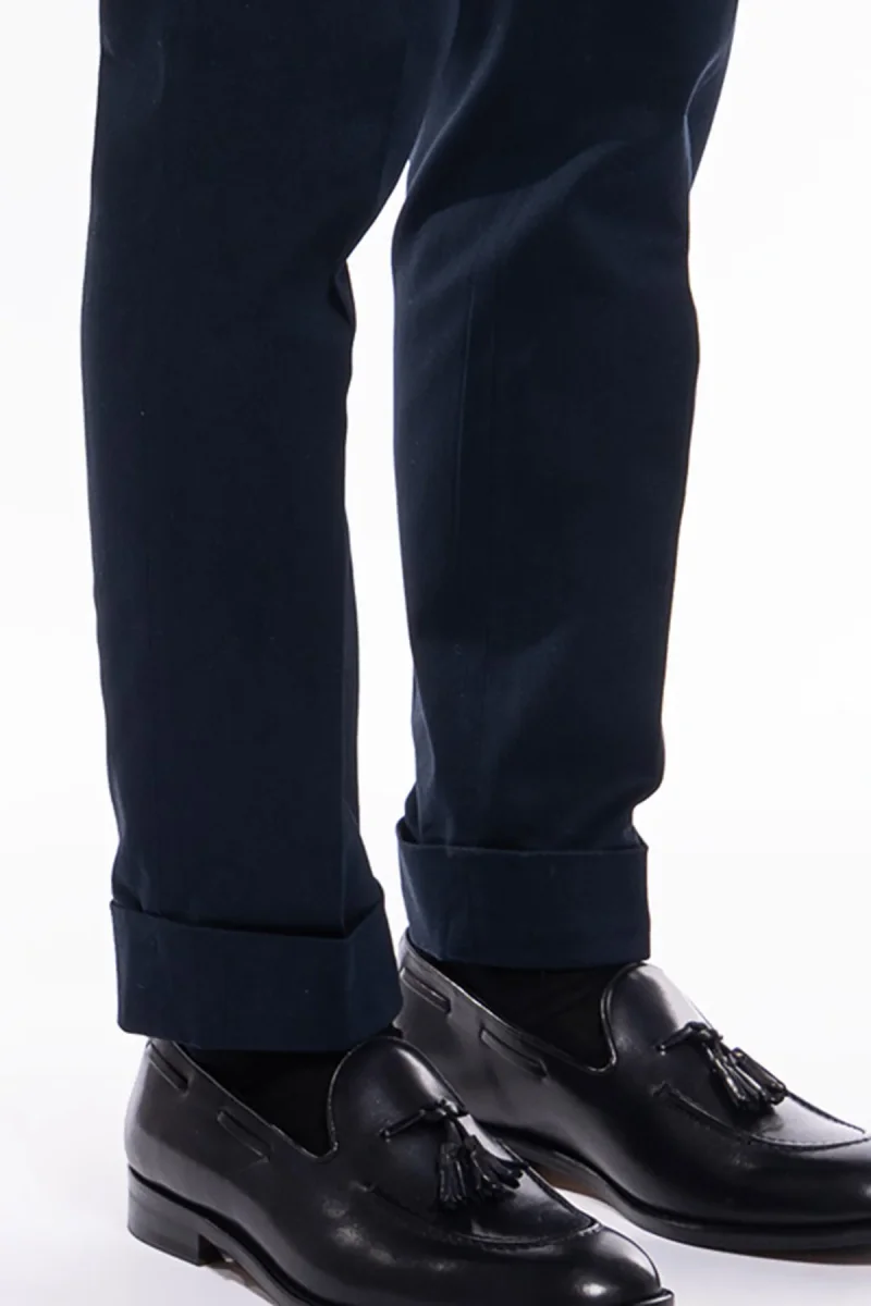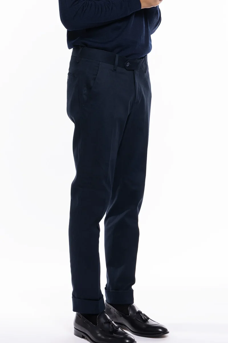 PANTALONE UOMO NAVY BLU TASCA AMERICA IN COTONE SLIM FIT CON RISVOLTO DI 5CM