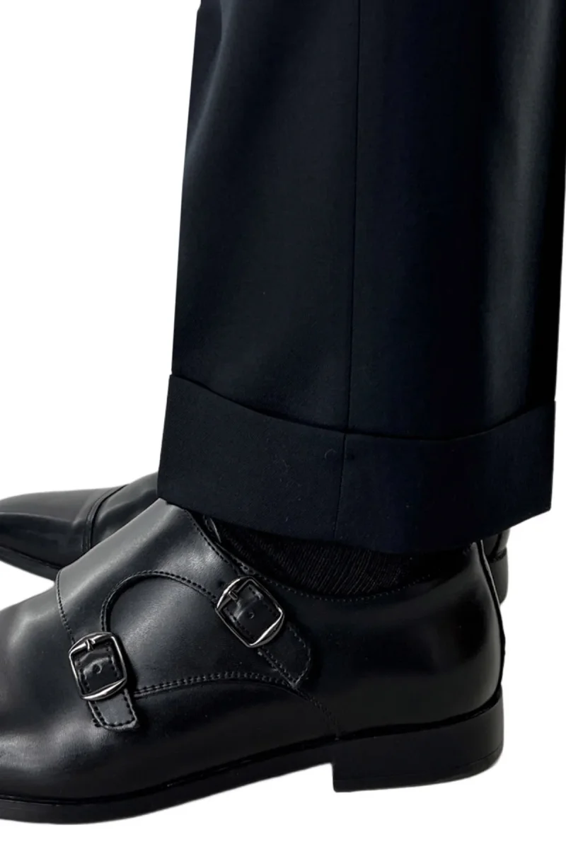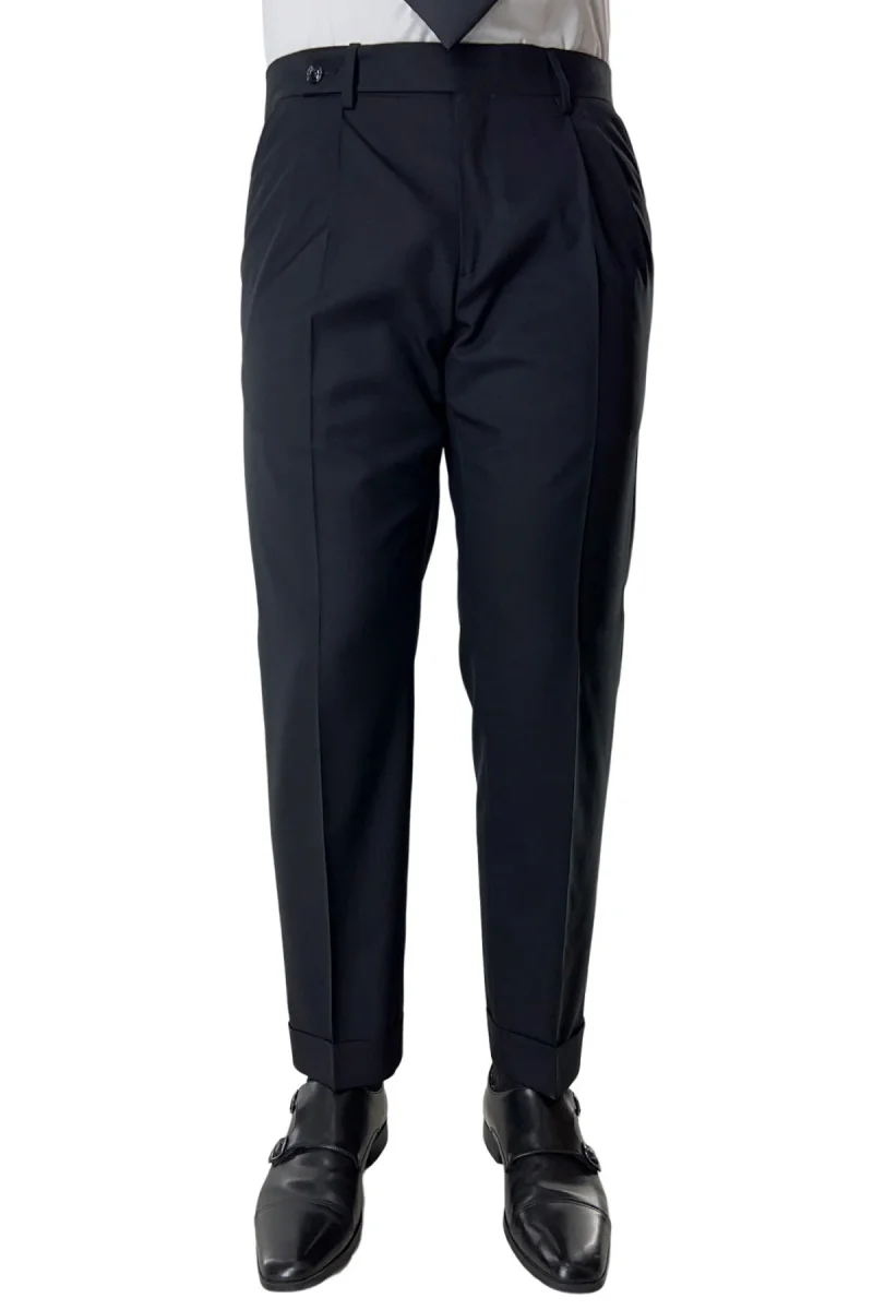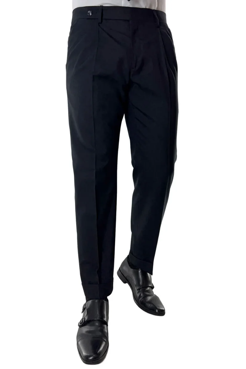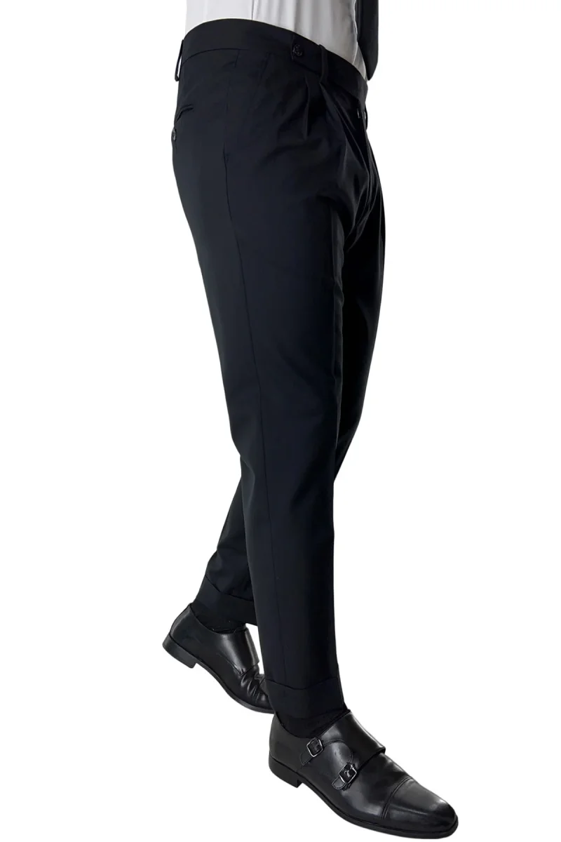 PANTALONE UOMO NERO CHIUSURA PROLUNGATA DOPPIA PINCES
